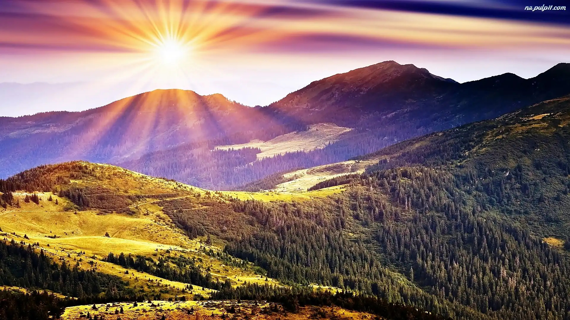 Słońca, Łąki, Lasy, Góry, Promienie Na Pulpit