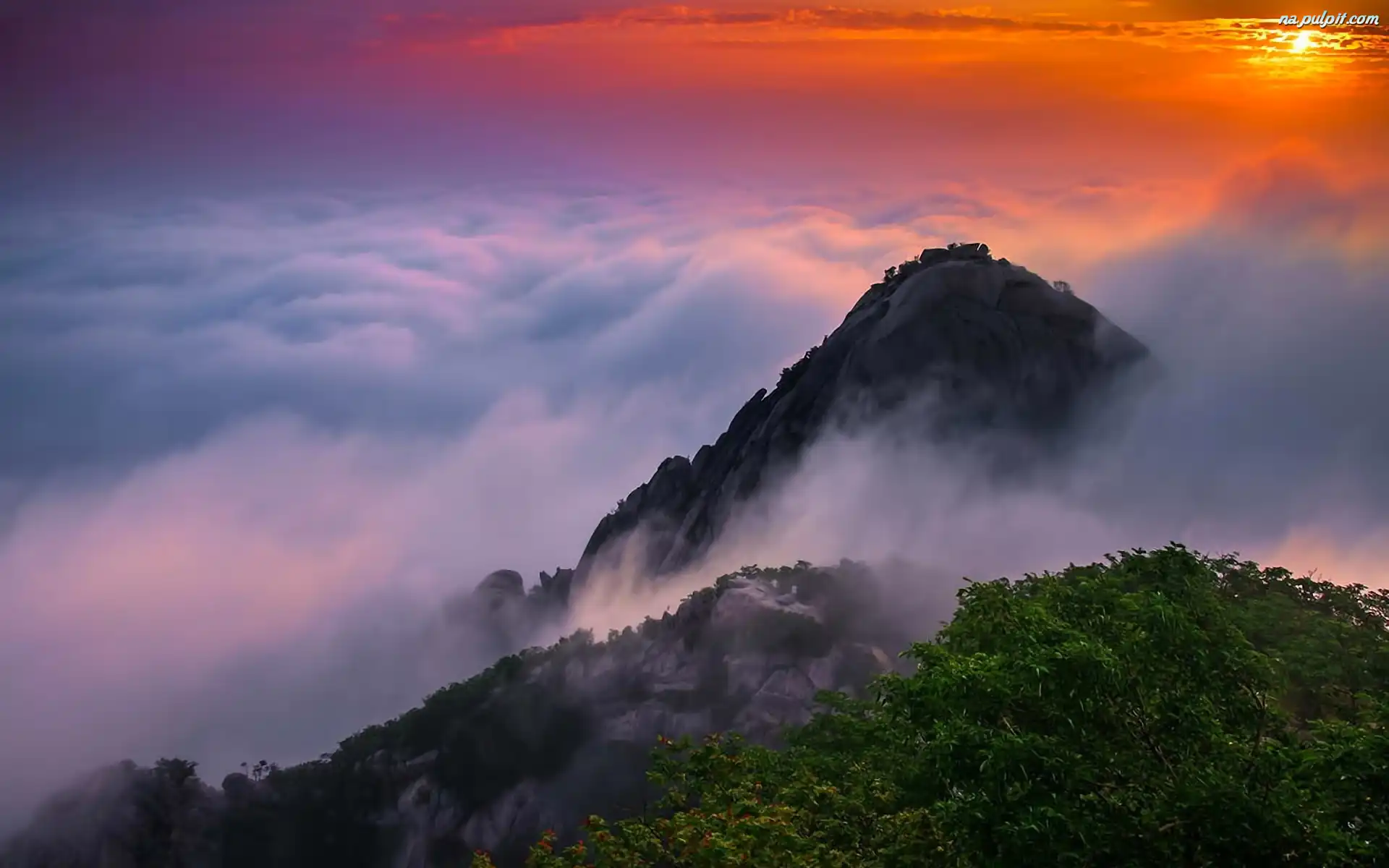 Słońca, Chmury, Roślinność, Góry, Wschód Na Pulpit