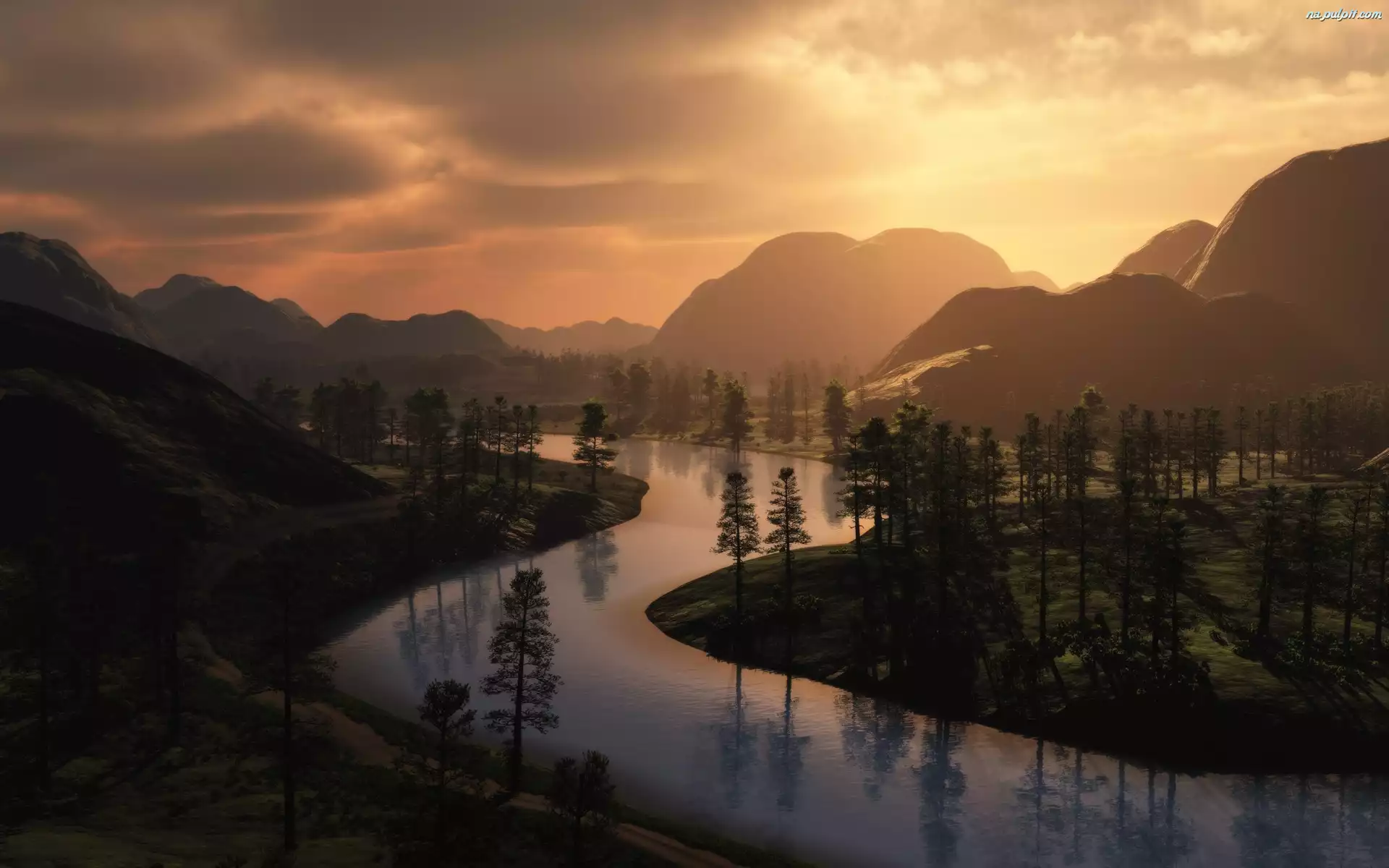 Słońca, Rzeka, Góry, Zachód