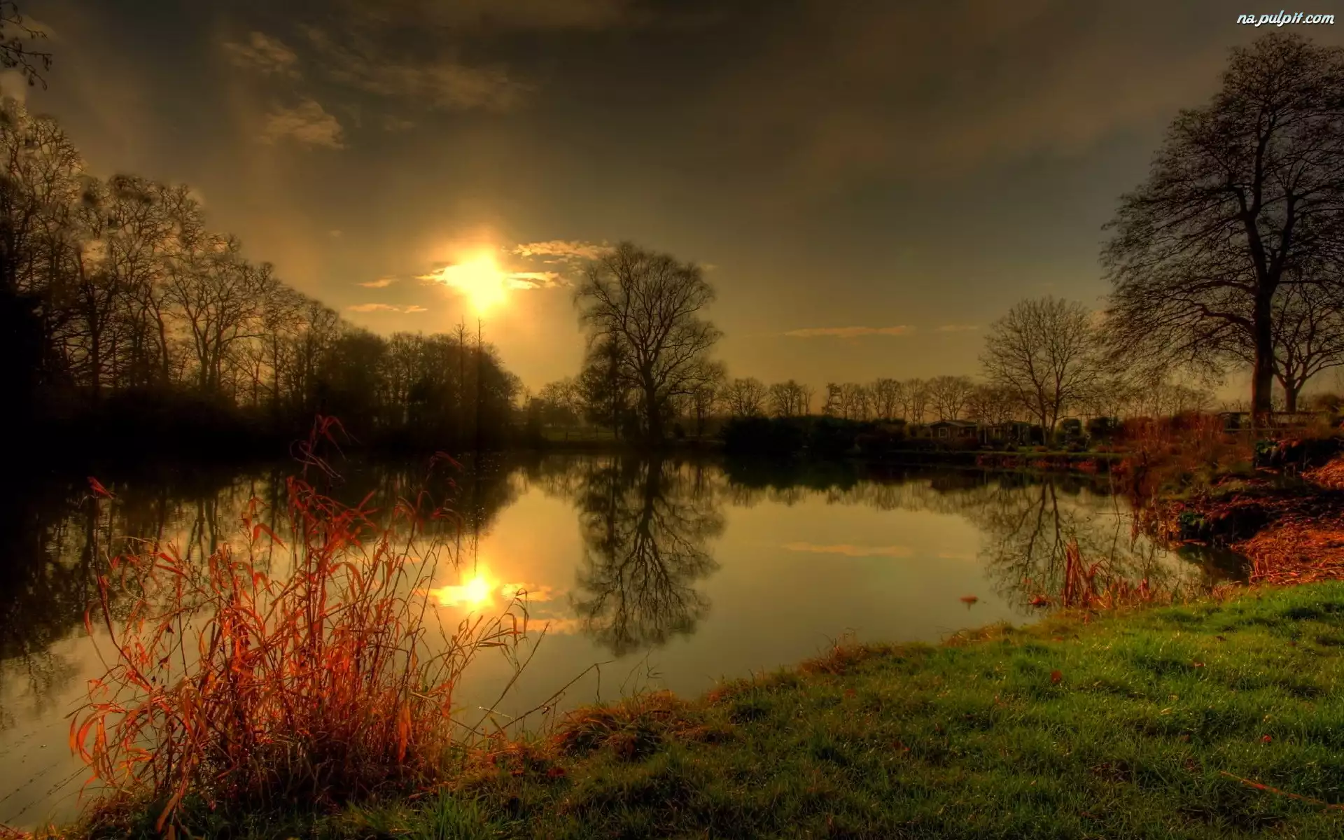 Słońca, Jezioro, Jesień, Zachód Na Pulpit