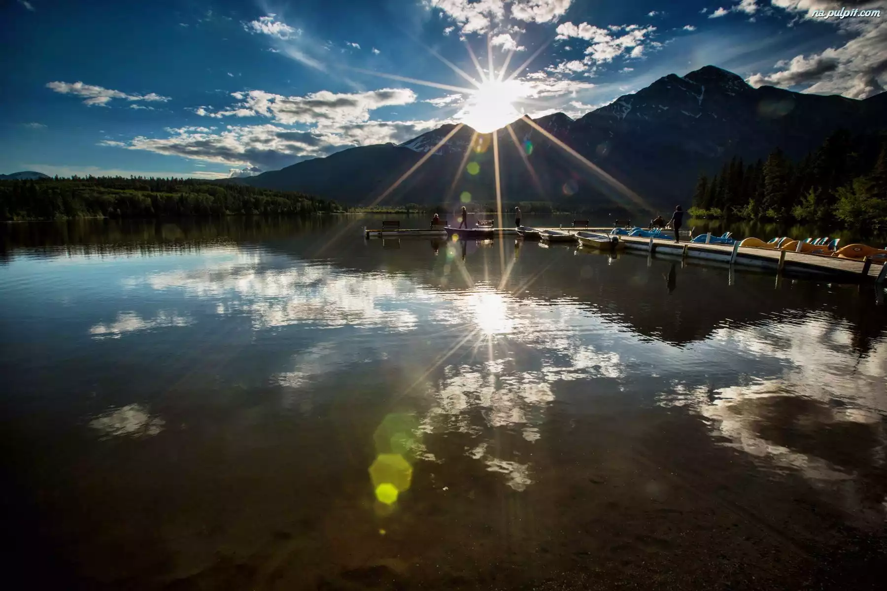 Słońca, Góry, Pomost, Jezioro, Wschód