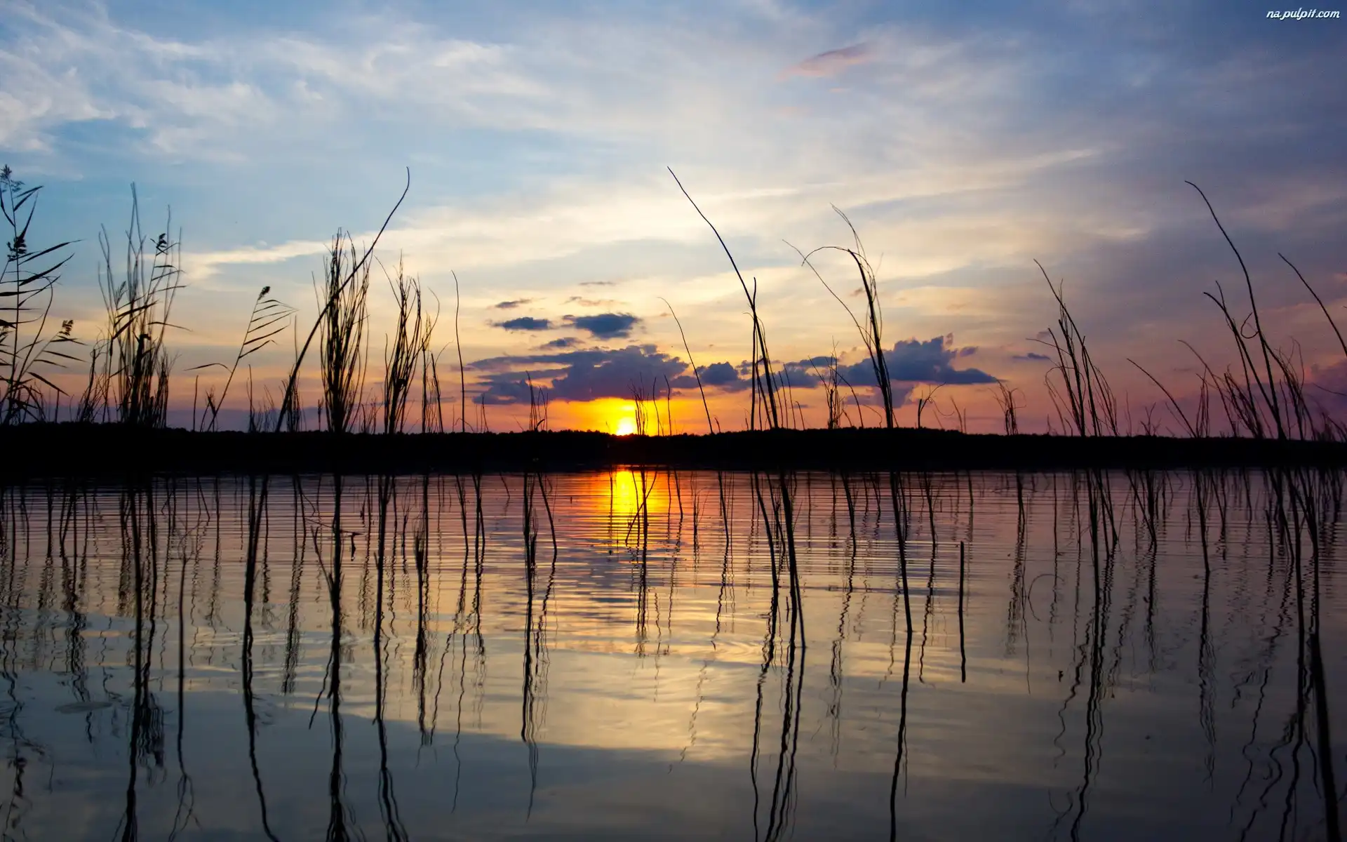 Słońca, Lasy, Trawy, Jezioro, Zachód Na Pulpit