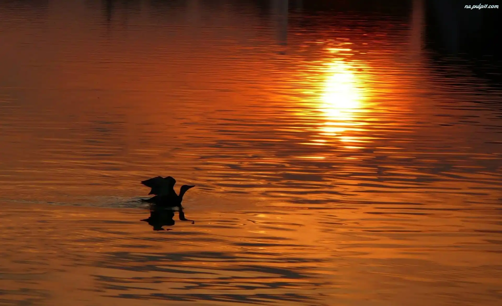 Słońca, Woda, Kaczka, Zachód Na Pulpit