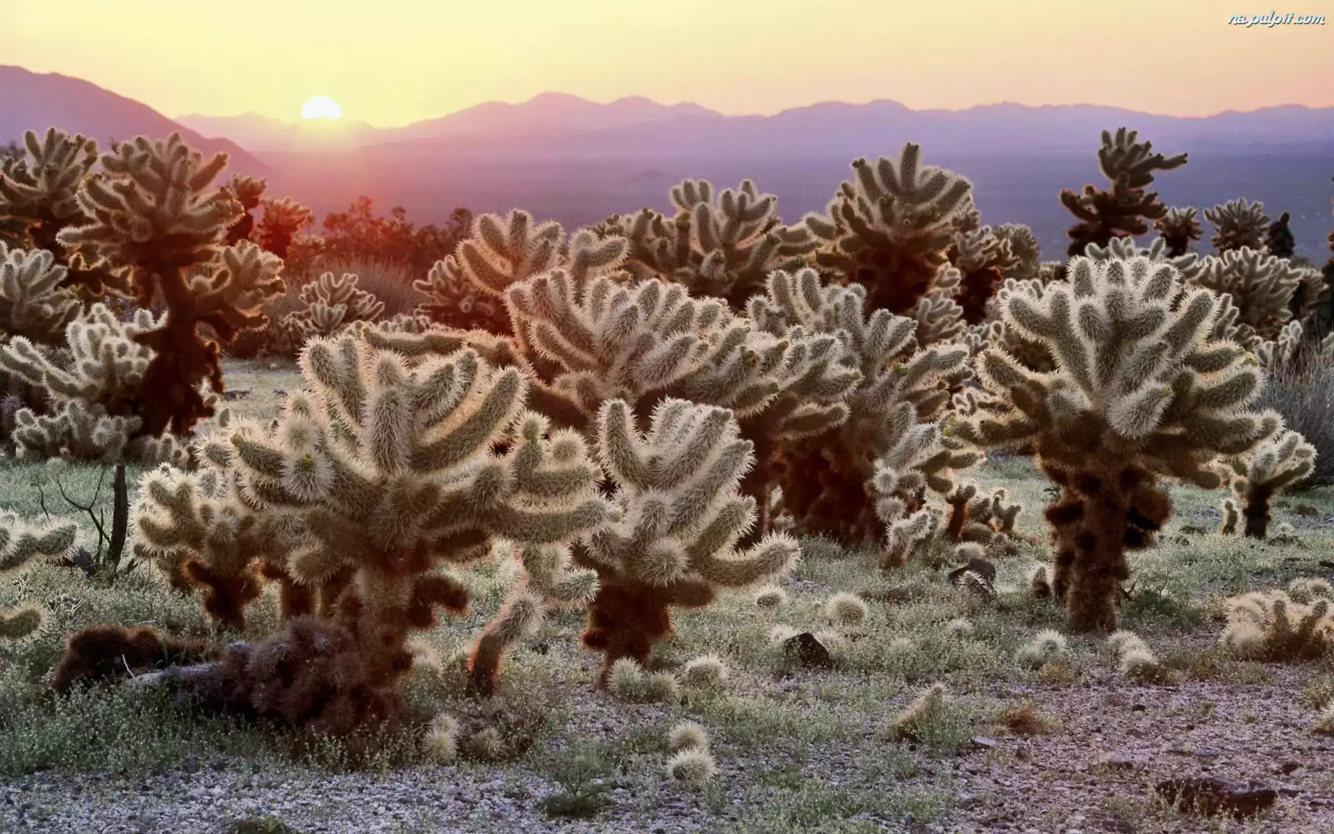 Słońca, Góry, Kaktusy, Promienie Na Pulpit