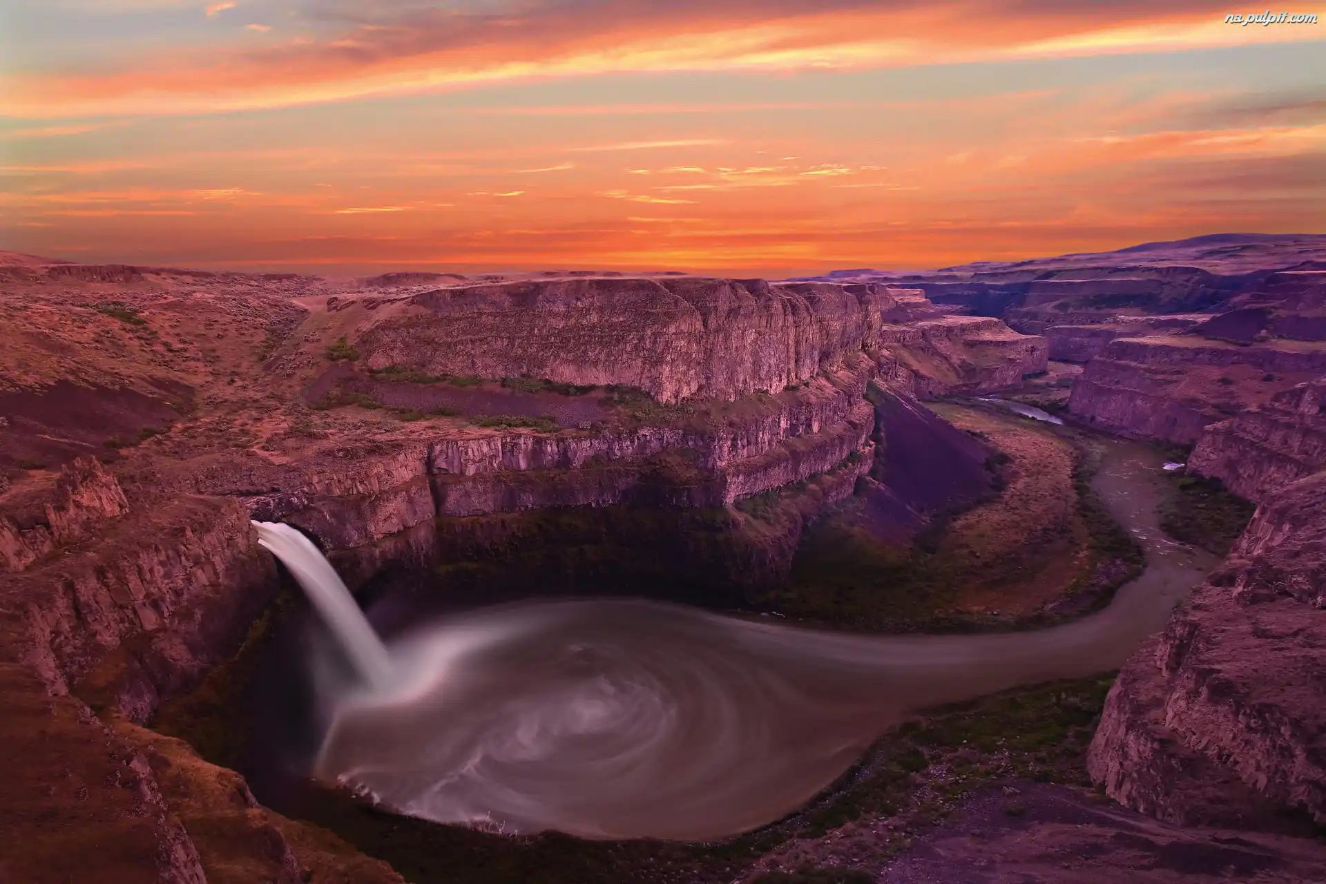 Słońca, Wodospad, Kanion, Zachód Na Pulpit
