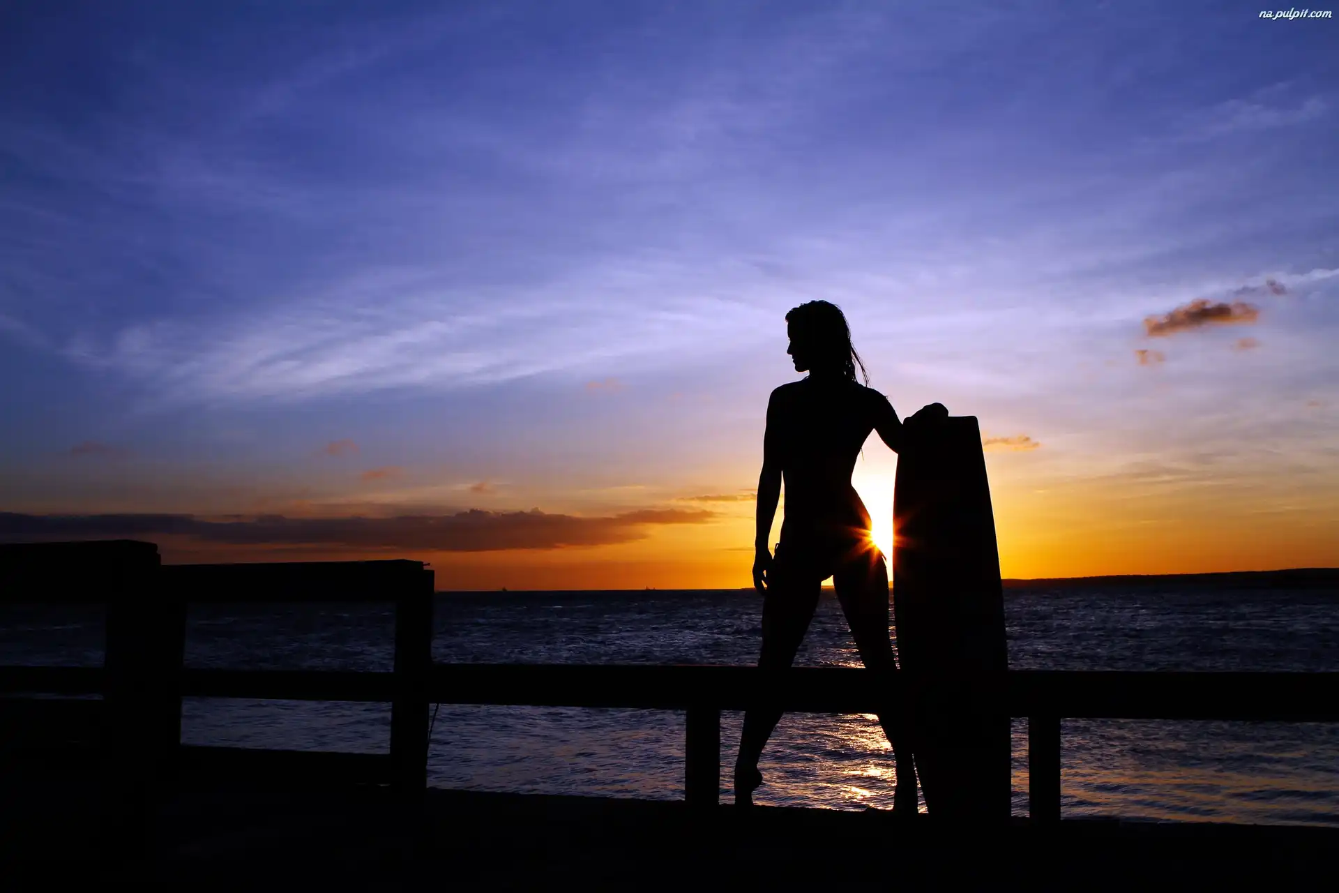 Słońca, Morze, Kobieta, Zachód Na Pulpit