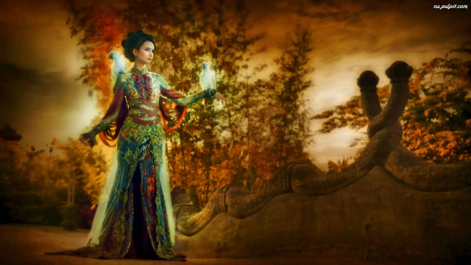 Słońca, Papugi, Kobieta, Zachód Na Pulpit