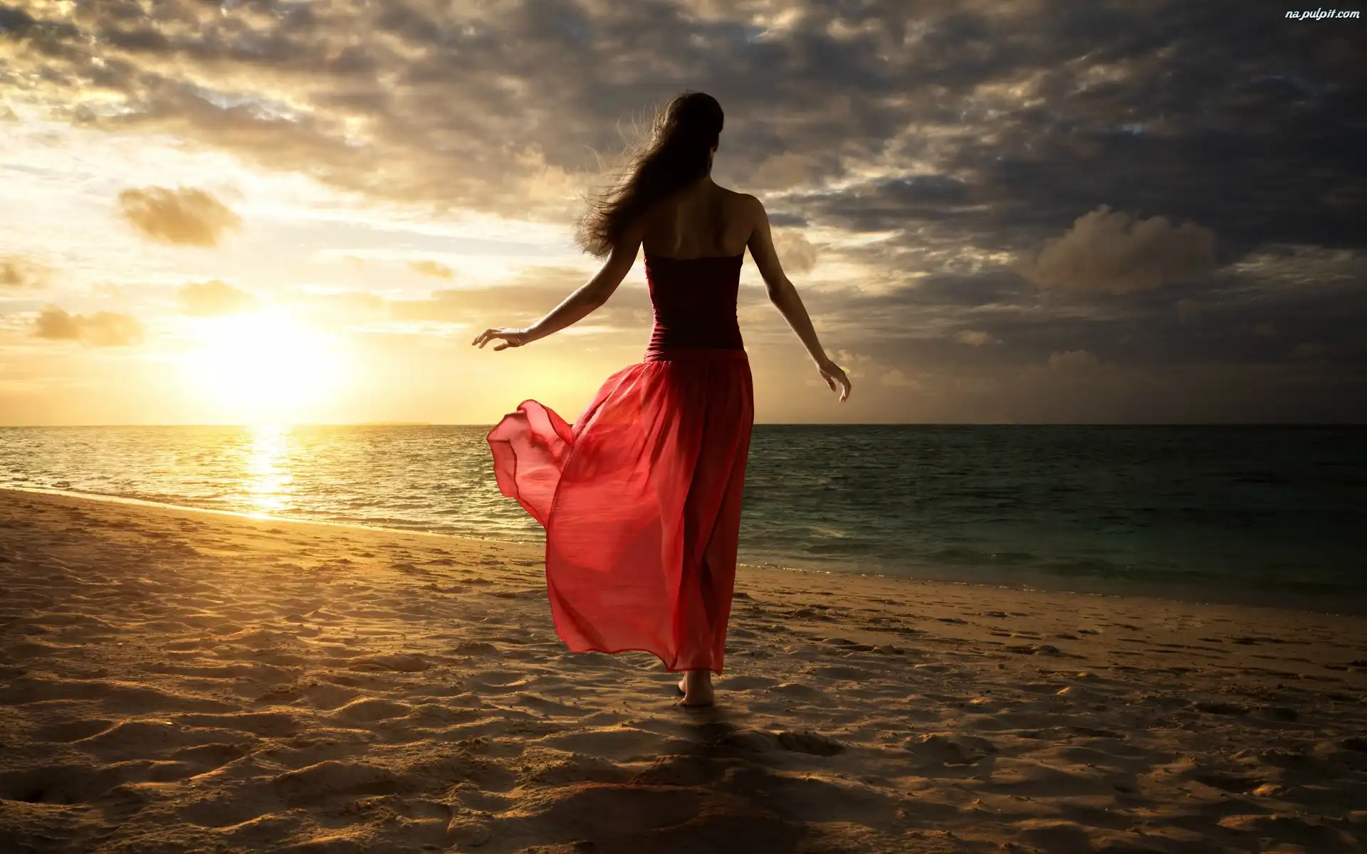 Słońca, Morze, Plaża, Kobieta, Zachód Na Pulpit