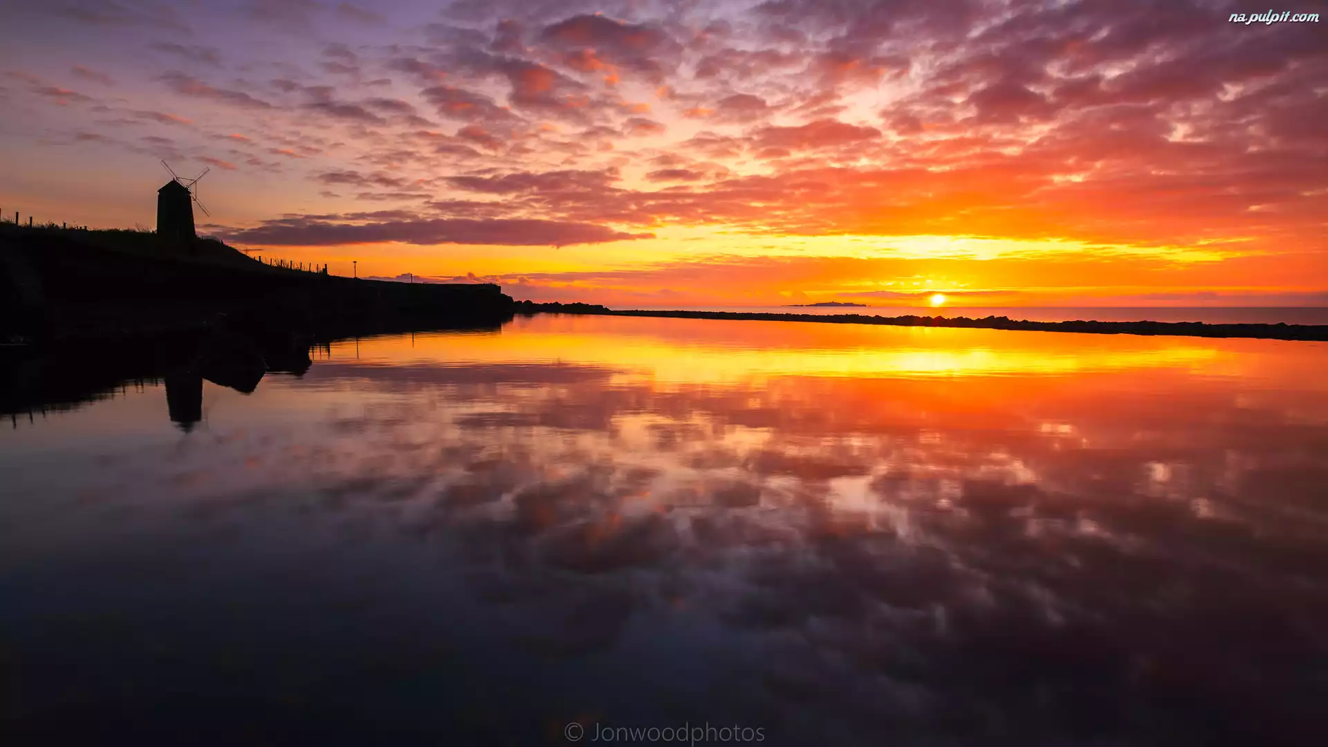 Niebo, Jezioro, Wschód słońca, Chmury, Kolorowe Na Pulpit