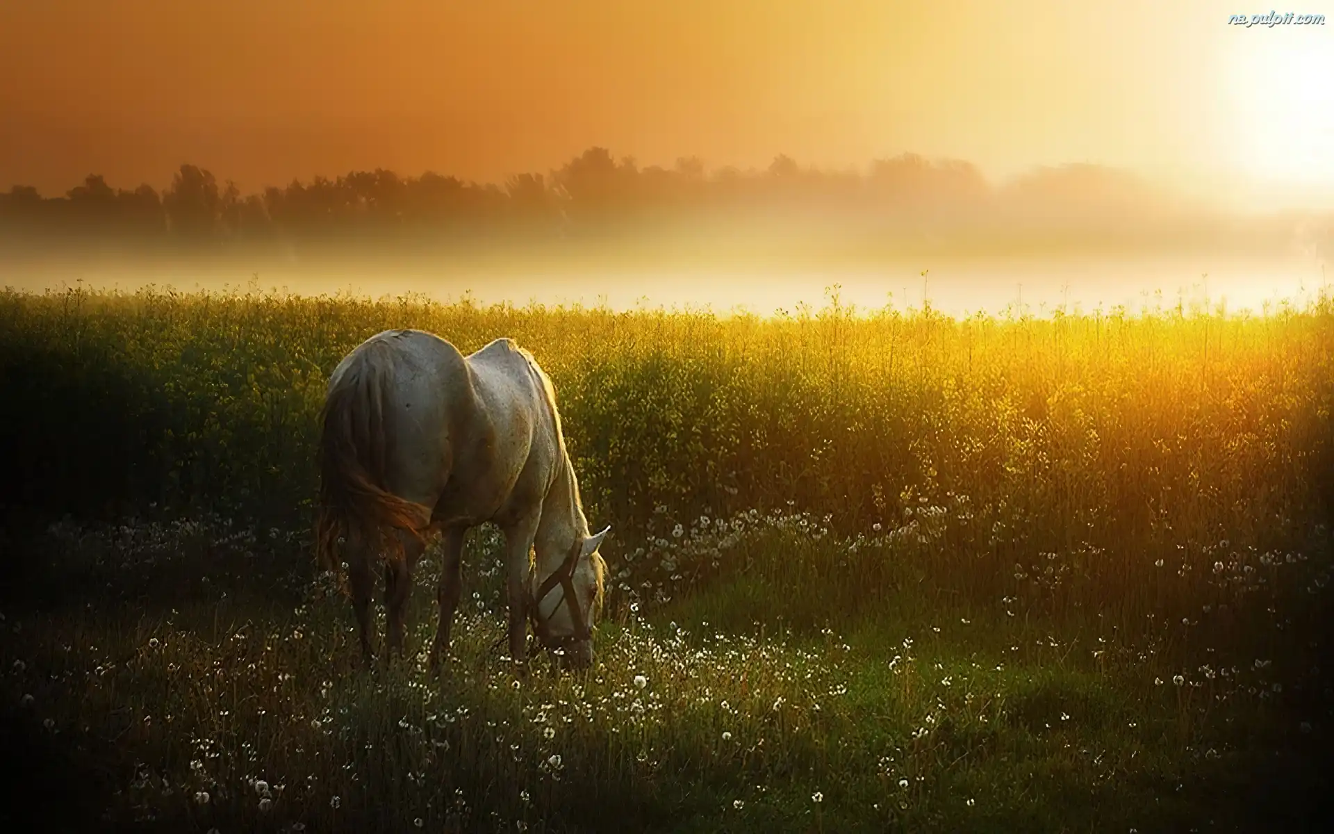 Słońca, Łąka, Koń, Zachód Na Pulpit