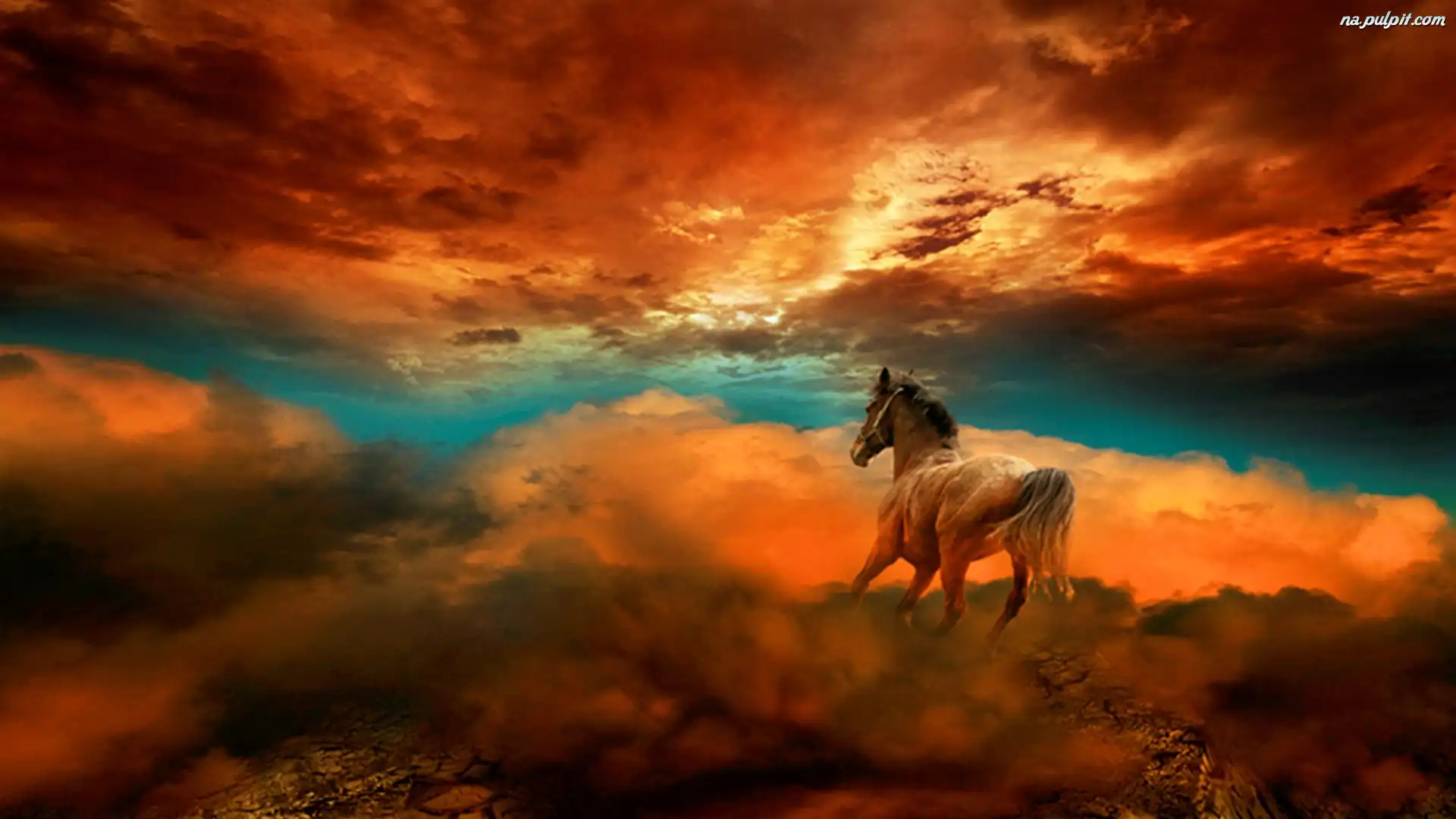 Słońca, Chmury, Koń, Zachód Na Pulpit