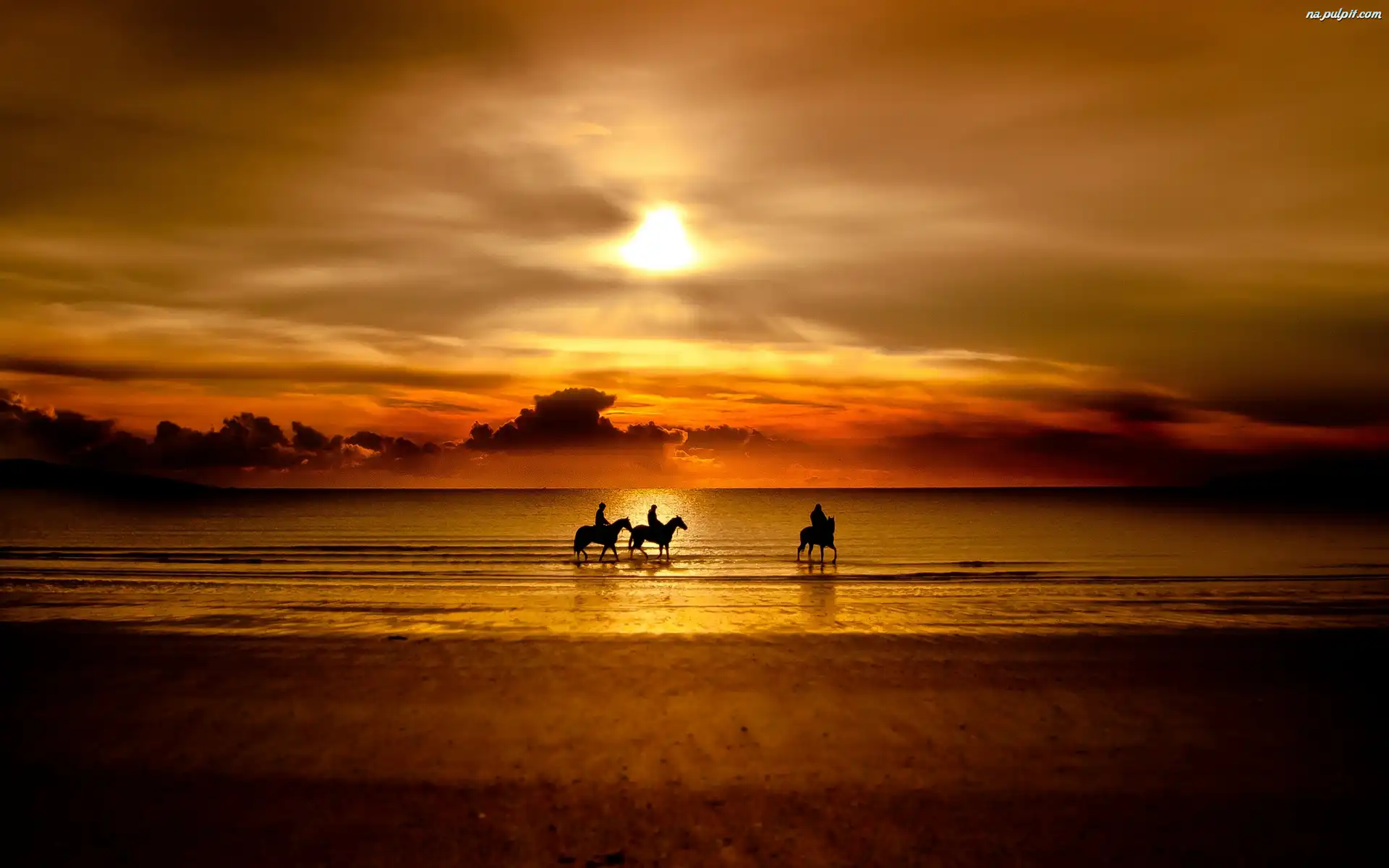 Słońca, Plaża, Morze, Konie, Zachód Na Pulpit