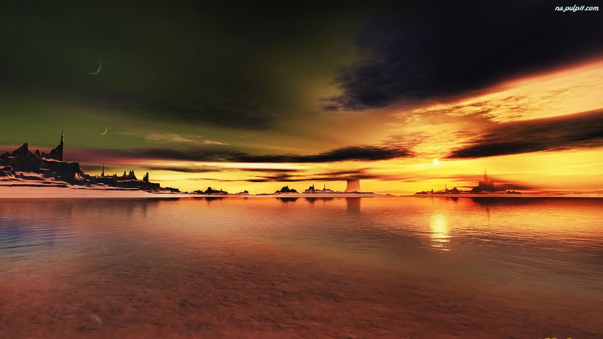 Słońca, Woda, Kosmos, Zachód Na Pulpit