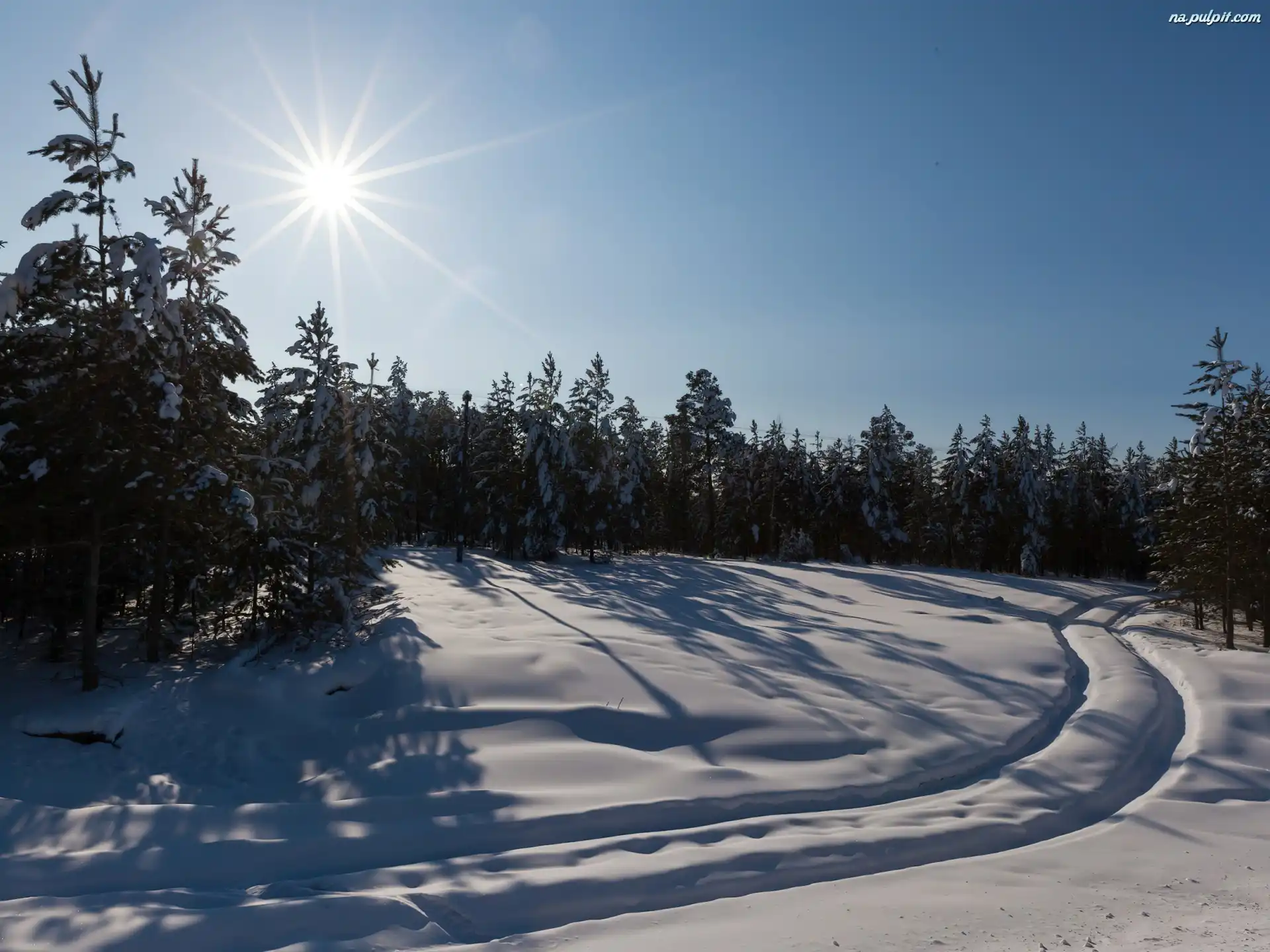 Słońca, Koleiny, Śnieg, Las, Promienie Na Pulpit