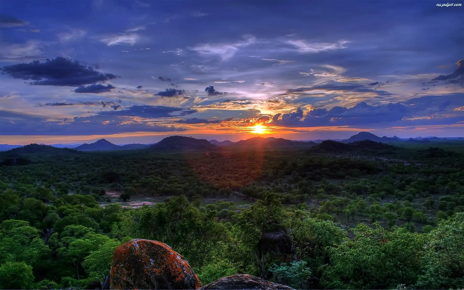 Słońca, Chmury, Lasy, Zachód Na Pulpit