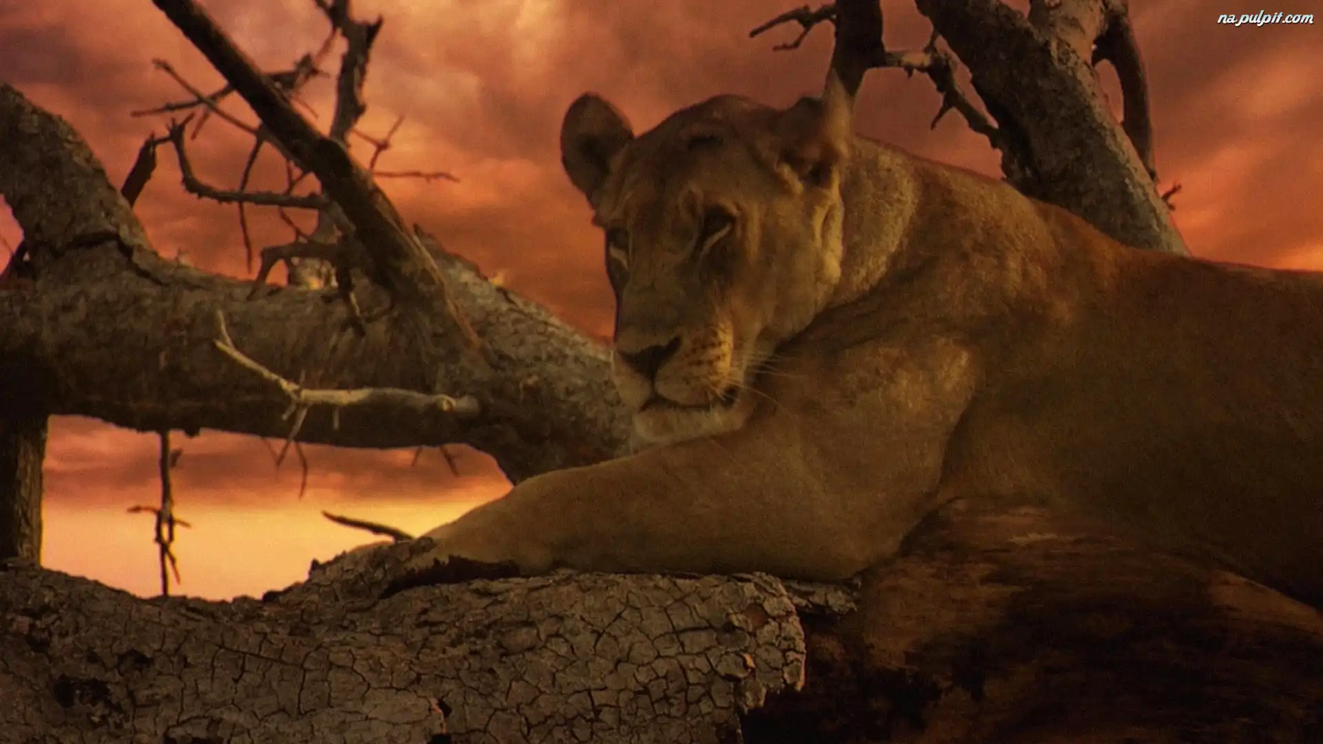 Słońca, Drzewo, Lwica, Zachód Na Pulpit