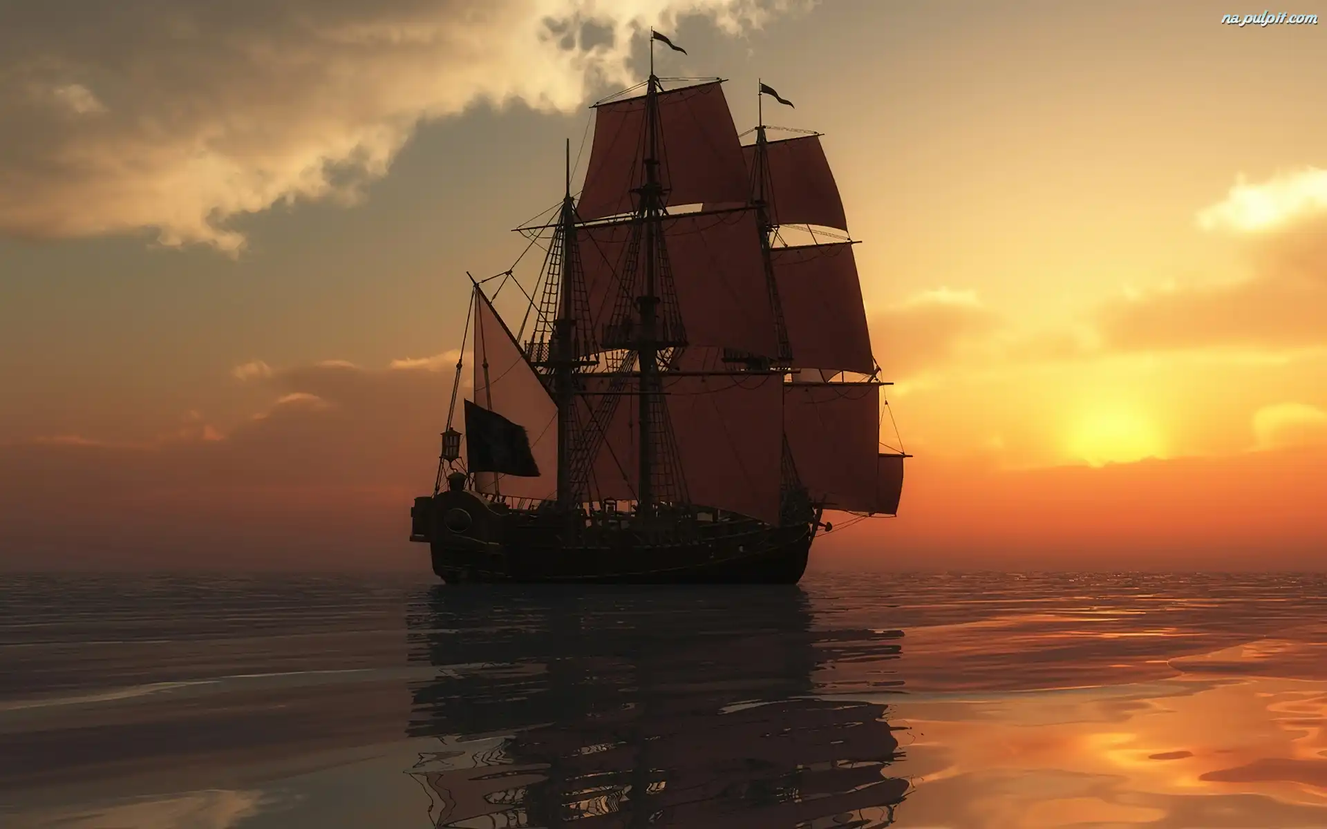 Słońca, Żaglowiec, Morze, Zachód Na Pulpit