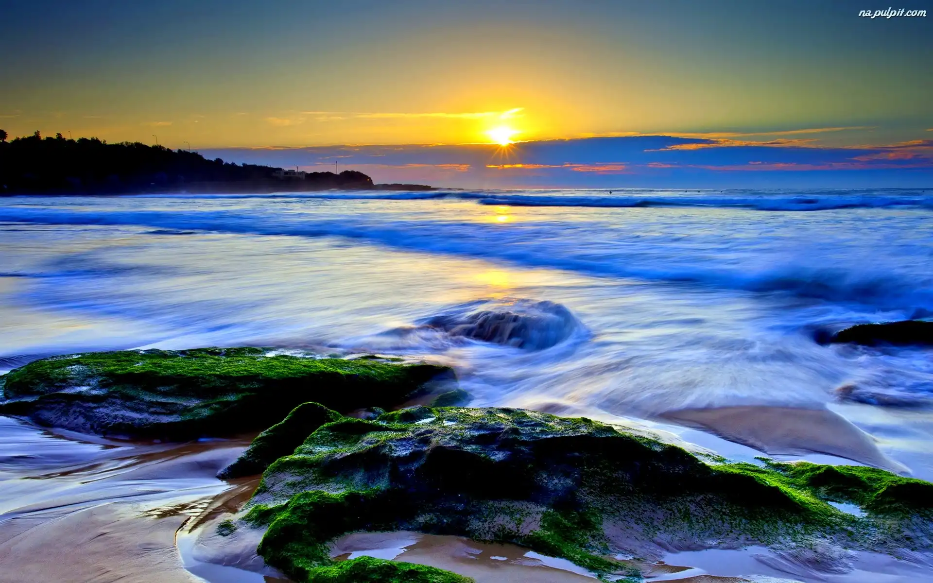 Słońca, Kamienie, Brzeg, Morze, Zachód Na Pulpit