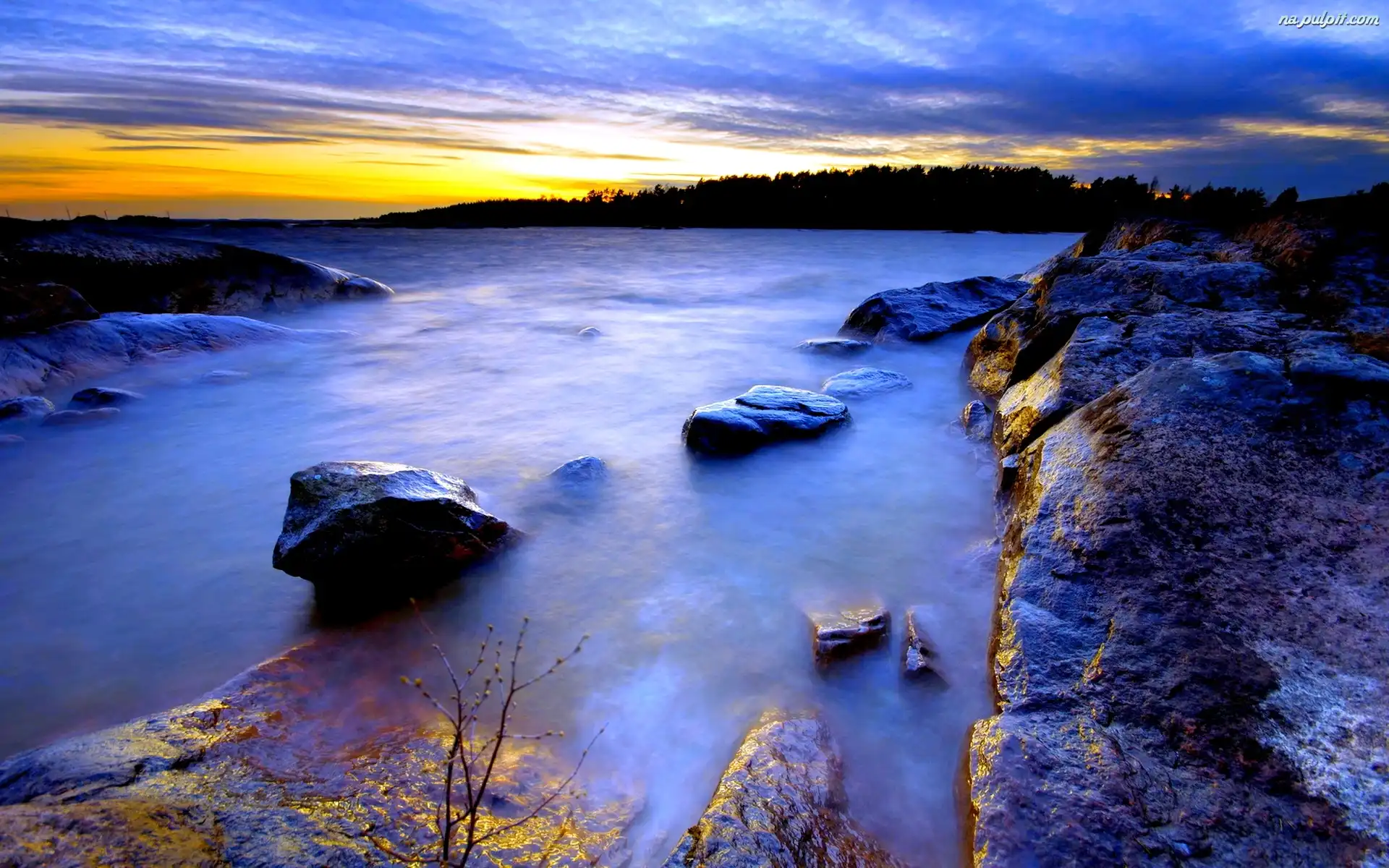 Słońca, Kamienie, Brzeg, Morze, Zachód Na Pulpit