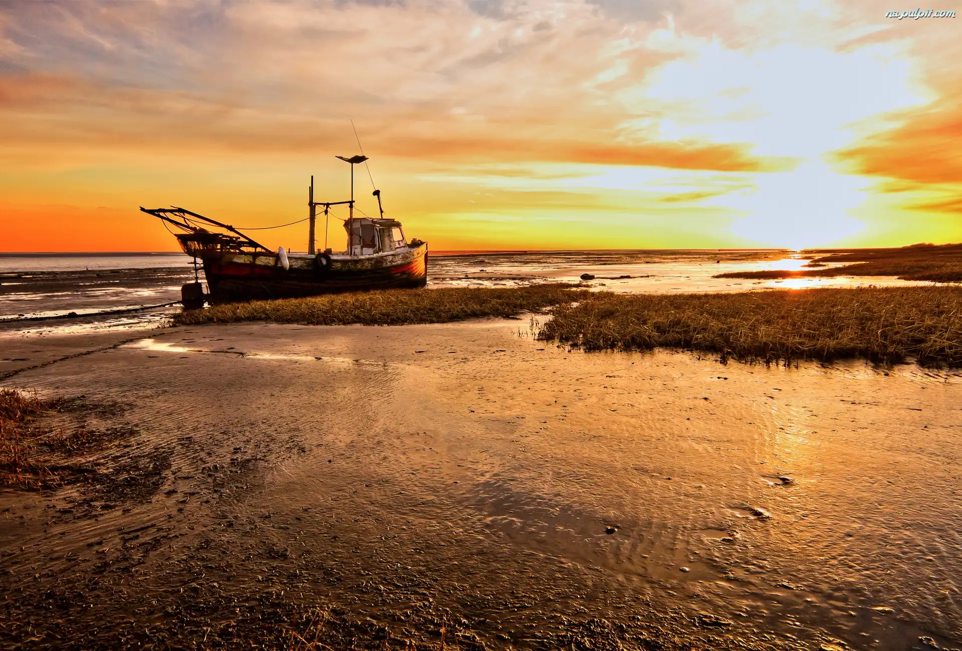 Słońca, Kuter, Brzeg, Morze, Zachód Na Pulpit