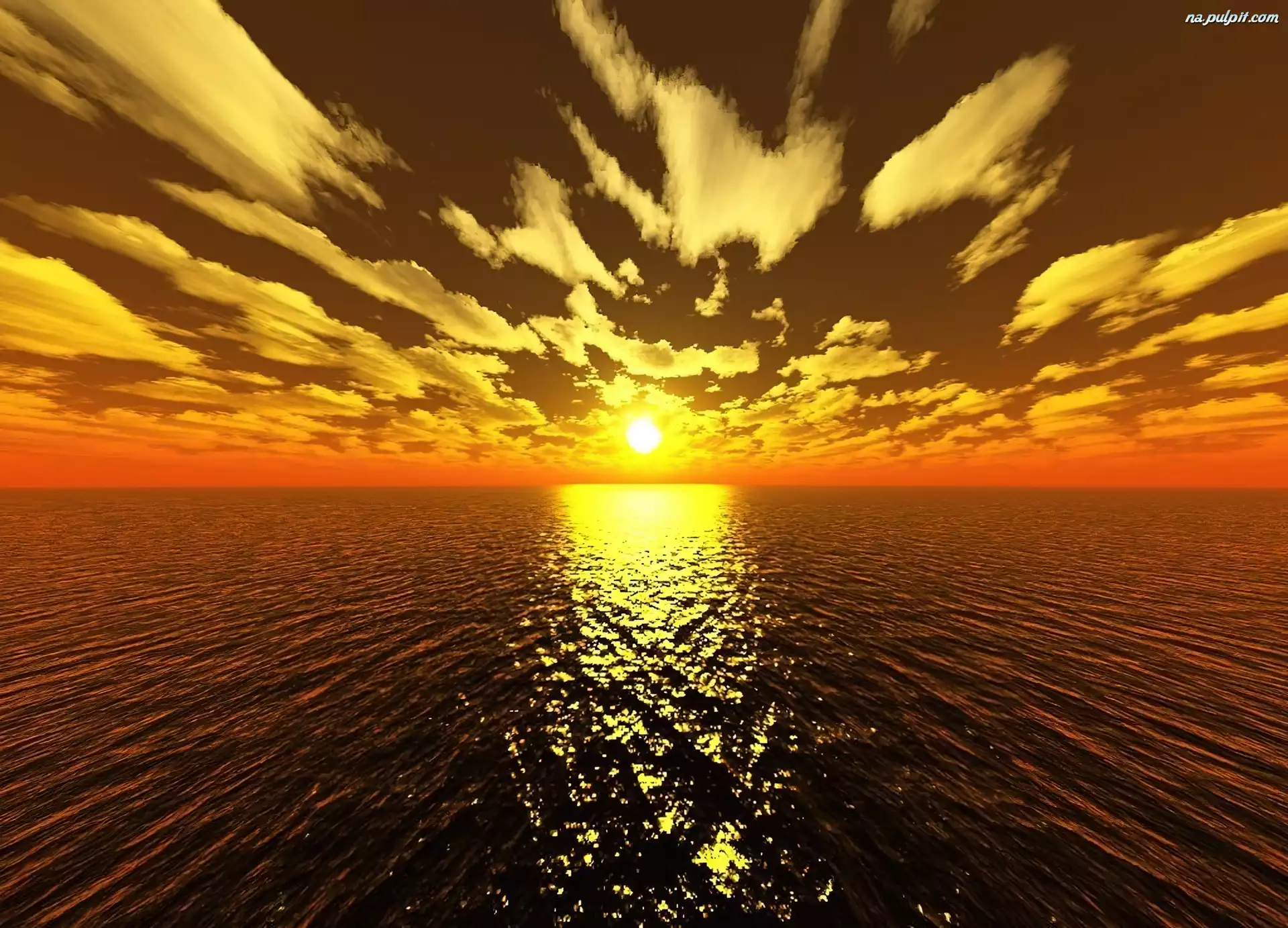 Słońca, Chmury, Morze, Zachód Na Pulpit