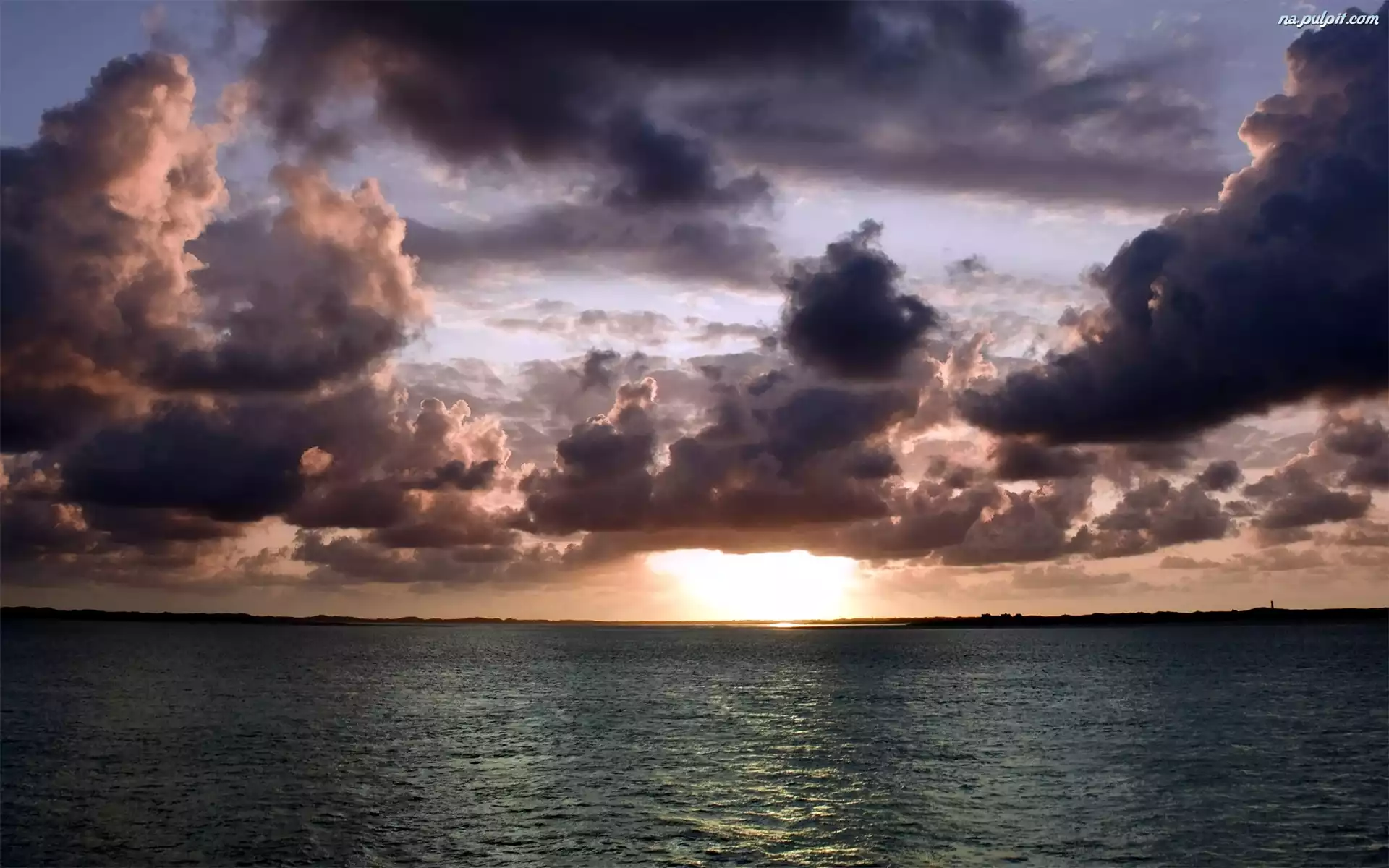 Słońca, Chmury, Morze, Zachód Na Pulpit