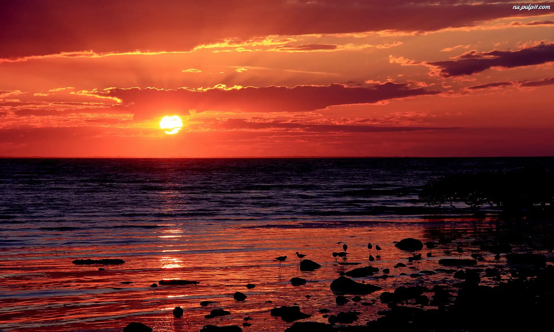 Słońca, Chmury, Morze, Zachód Na Pulpit