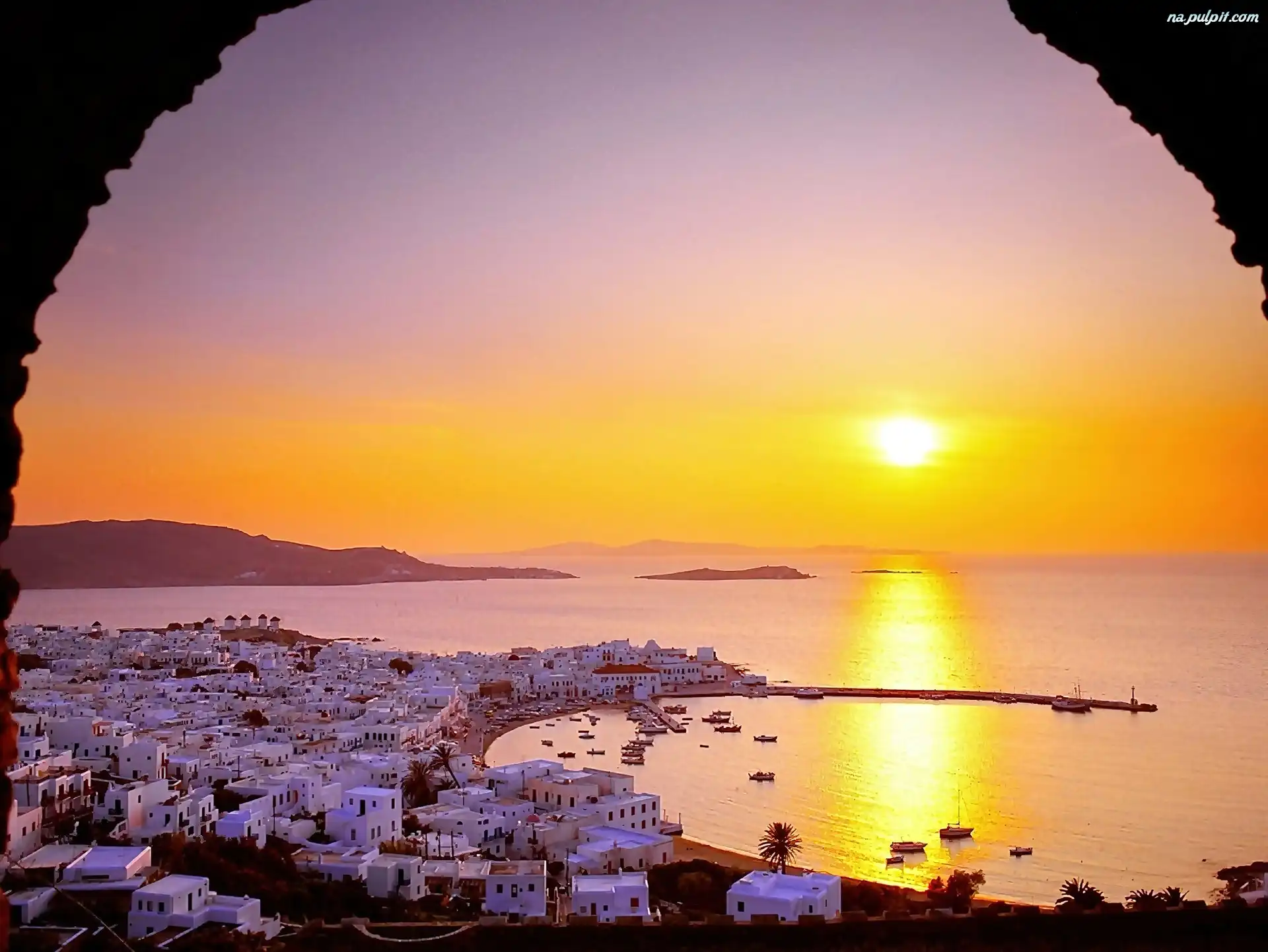 Słońca, Cyklady, Egejskie, Morze, Zachód Na Pulpit