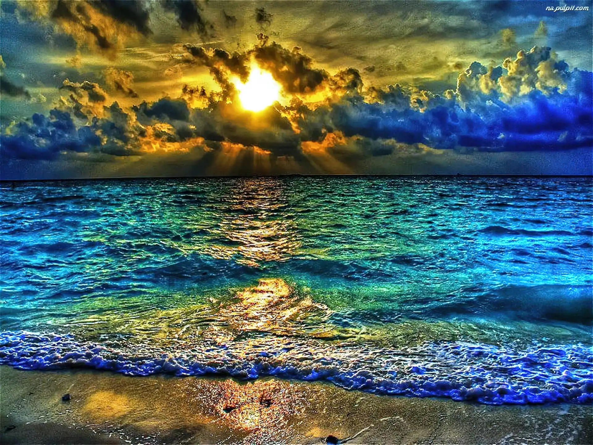 Słońca, Chmury, Fale, Morze, Zachód Na Pulpit