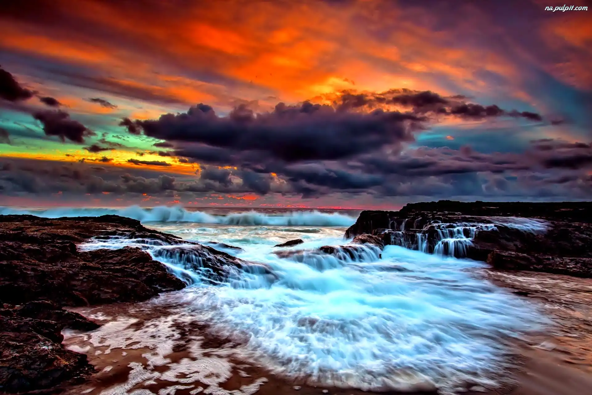 Słońca, Chmury, Fale, Morze, Zachód Na Pulpit