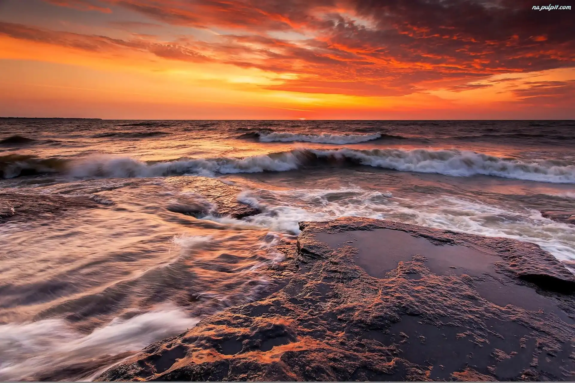 Słońca, Piękny, Fale, Morze, Zachód Na Pulpit