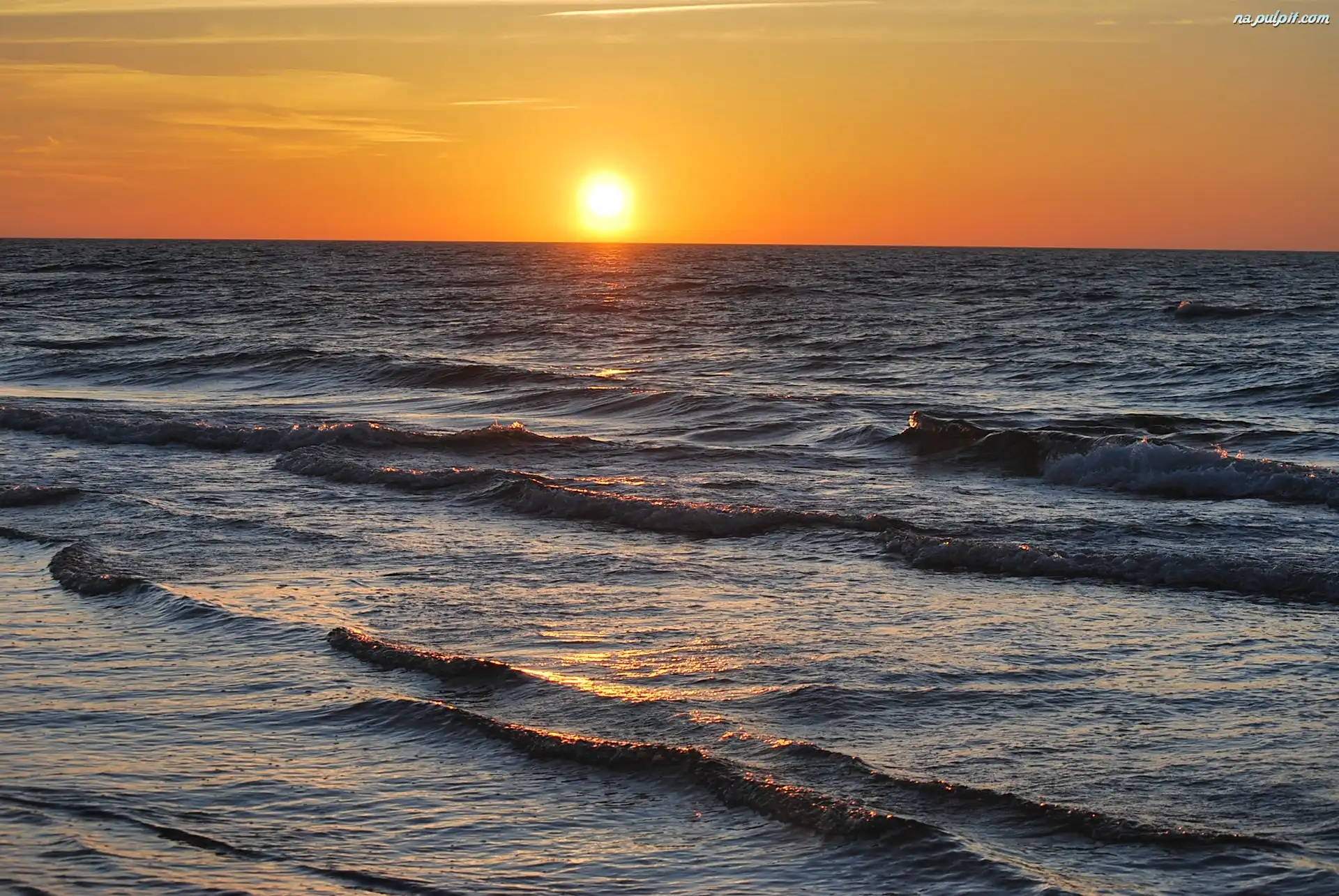 Słońca, Jastrzębia Góra, Fale, Morze, Zachód
