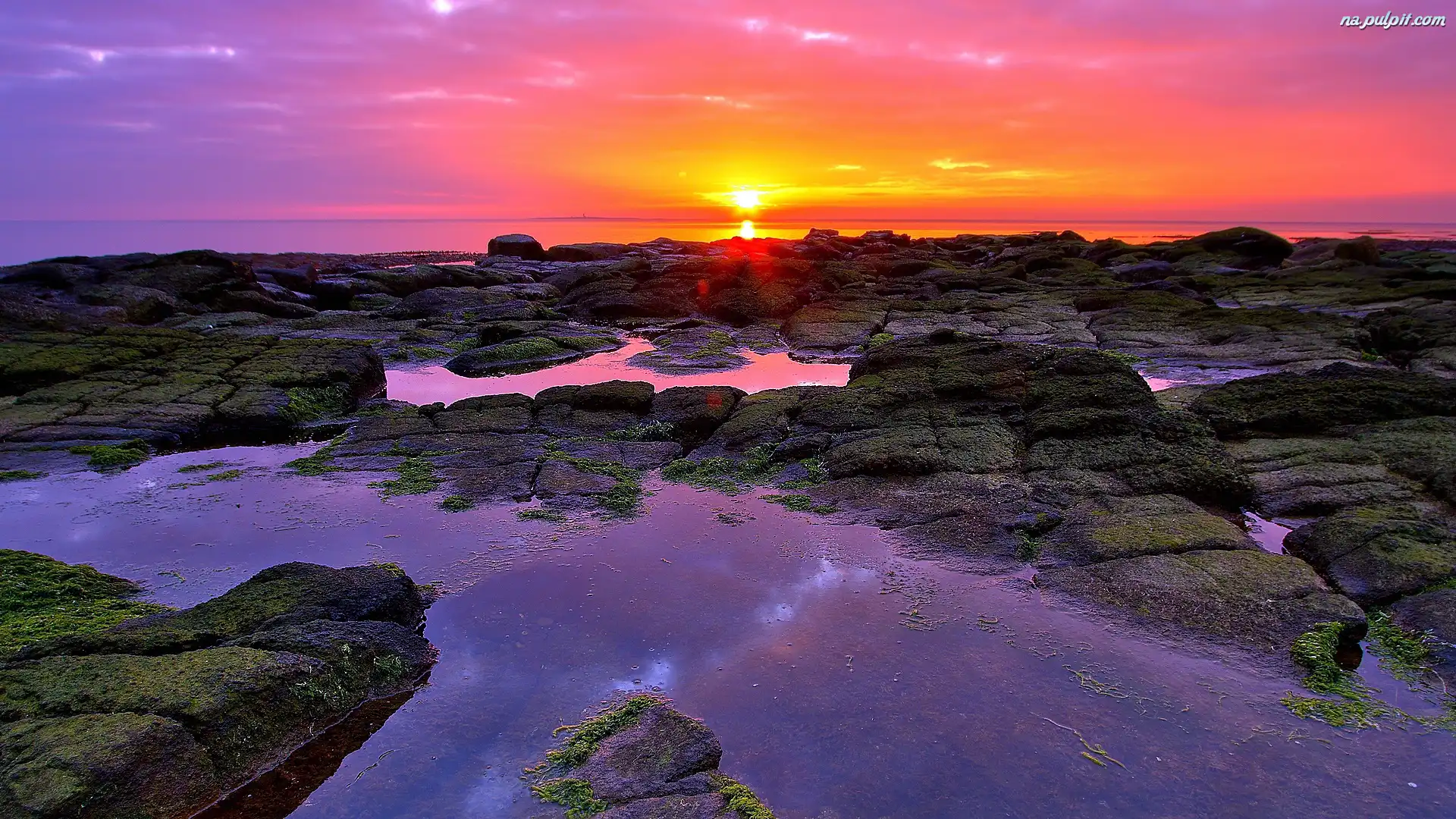 Slońca, Kamienie, Morze, Zachód Na Pulpit