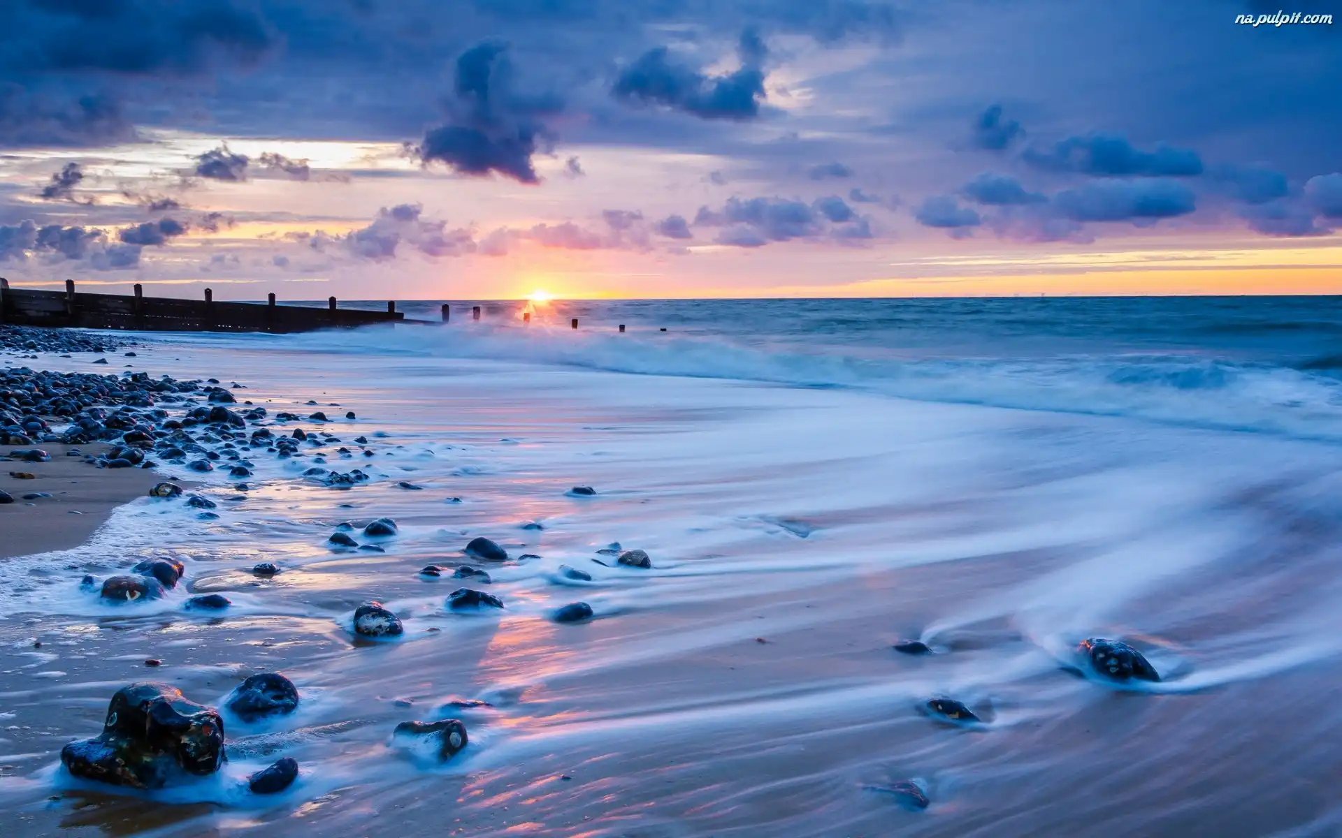 Słońca, Kamienie, Morze, Zachód Na Pulpit