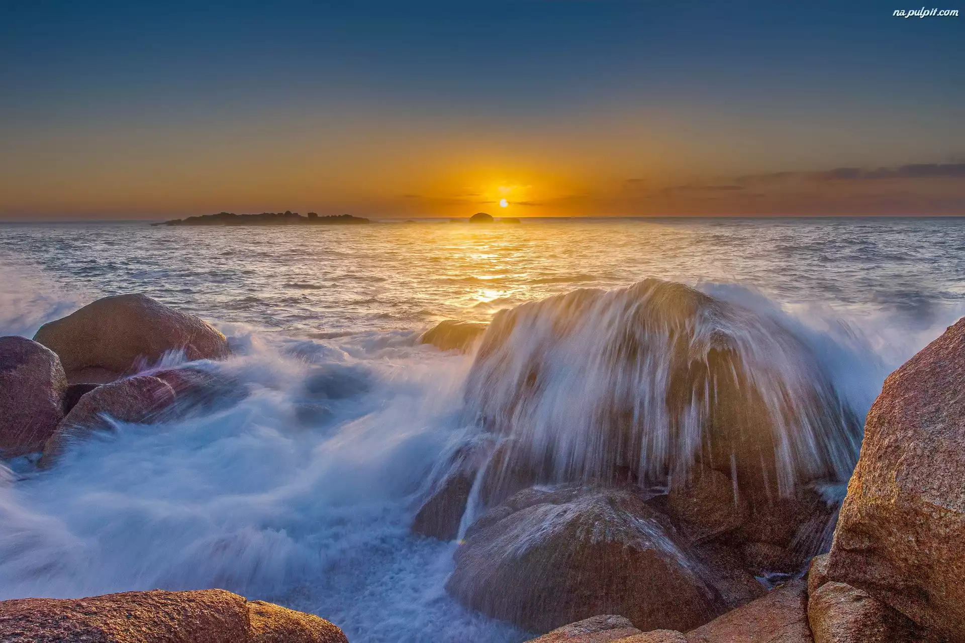 Słońca, Kamienie, Morze, Zachód Na Pulpit