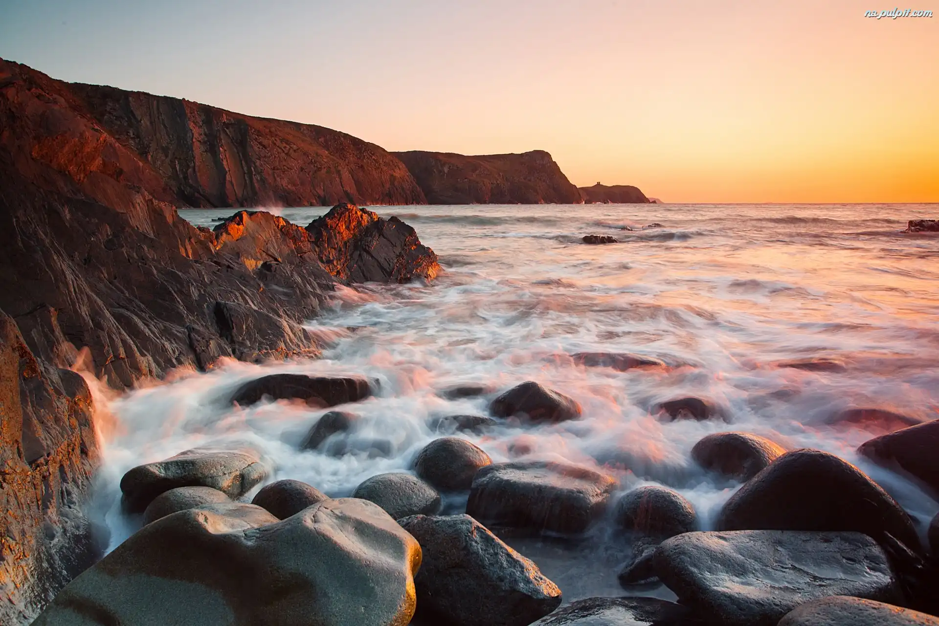 Słońca, Kamienie, Klif, Morze, Zachód