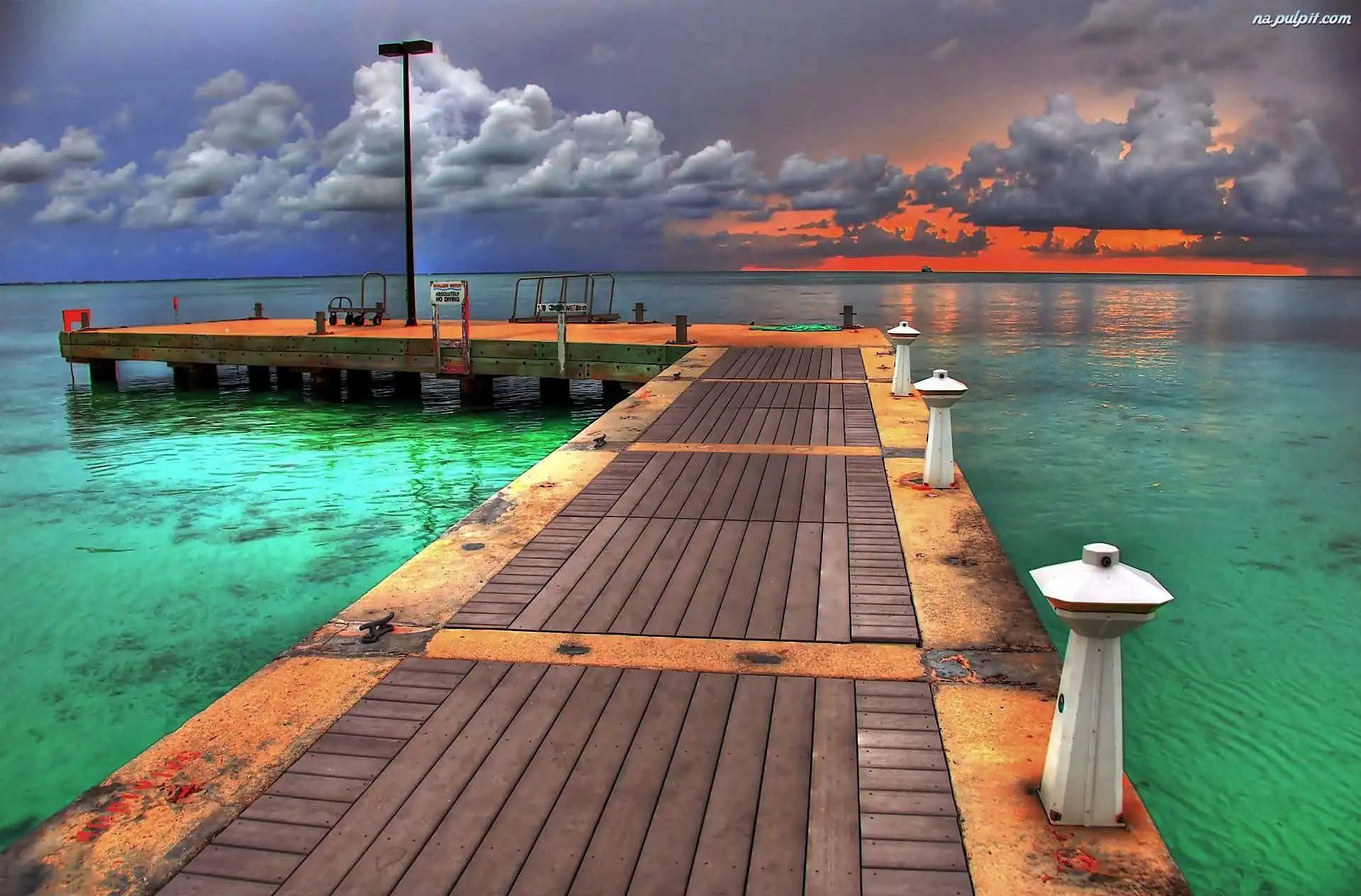 Słońca, Chmury, Molo, Morze, Zachód Na Pulpit