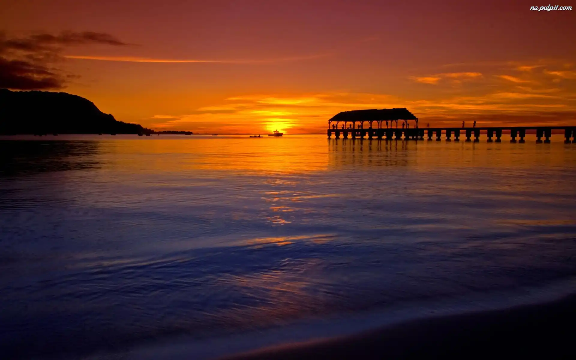 Słońca, Molo, Morze, Zachód Na Pulpit