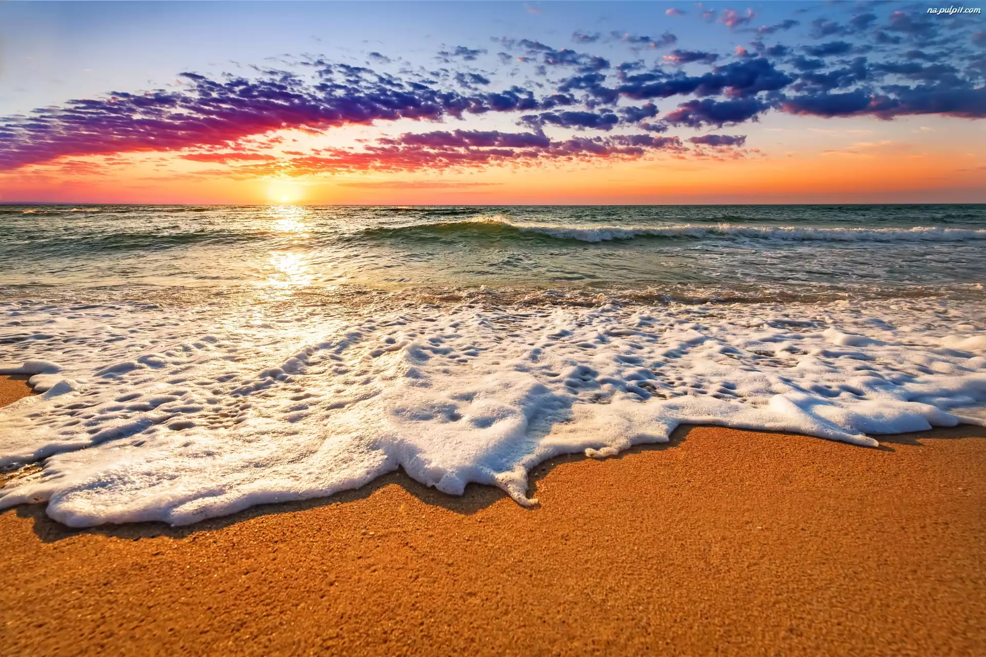 Słońca, Fale, Plaża, Morze, Wschód Na Pulpit