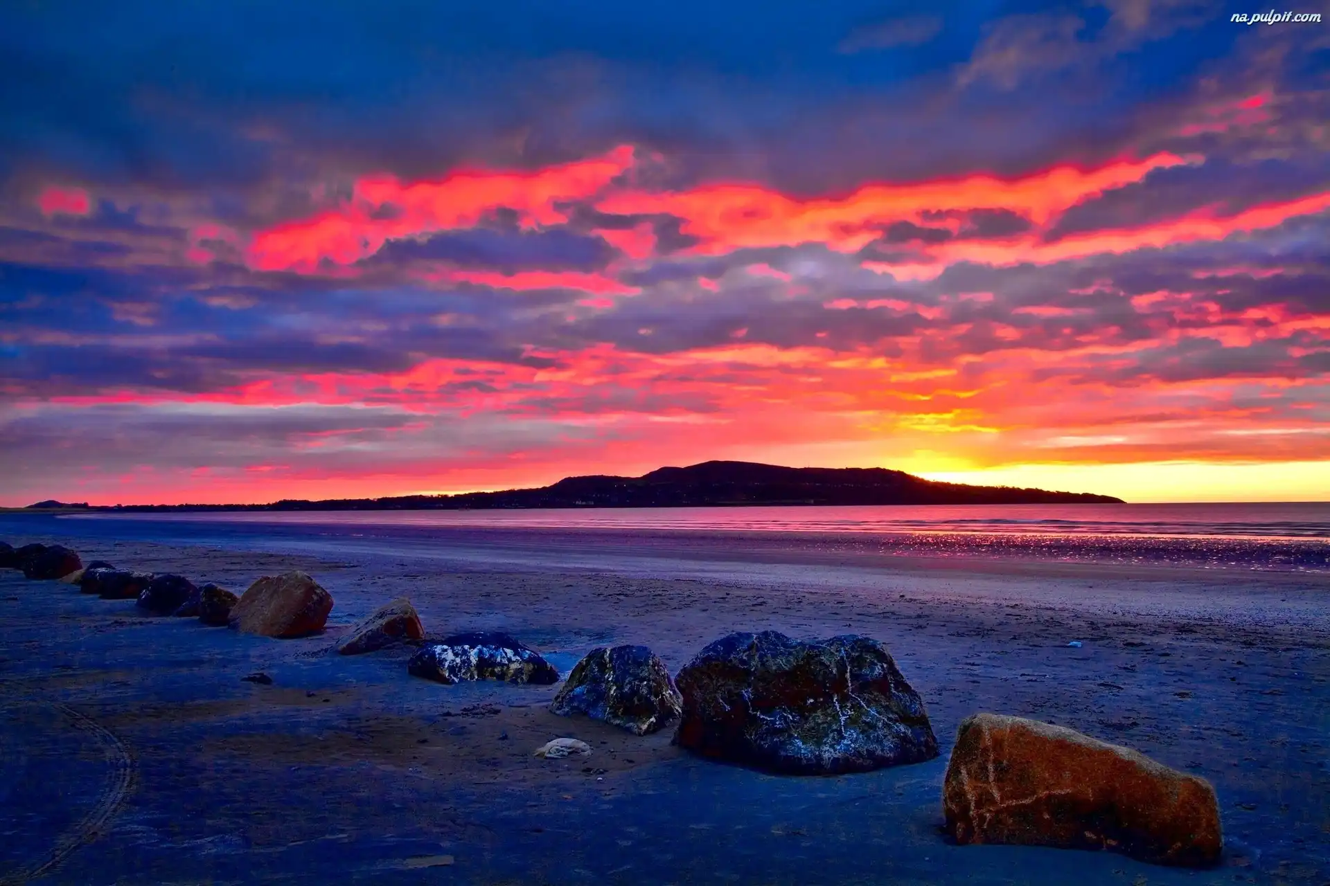Słońca, Kamienie, Plaża, Morze, Zachód Na Pulpit