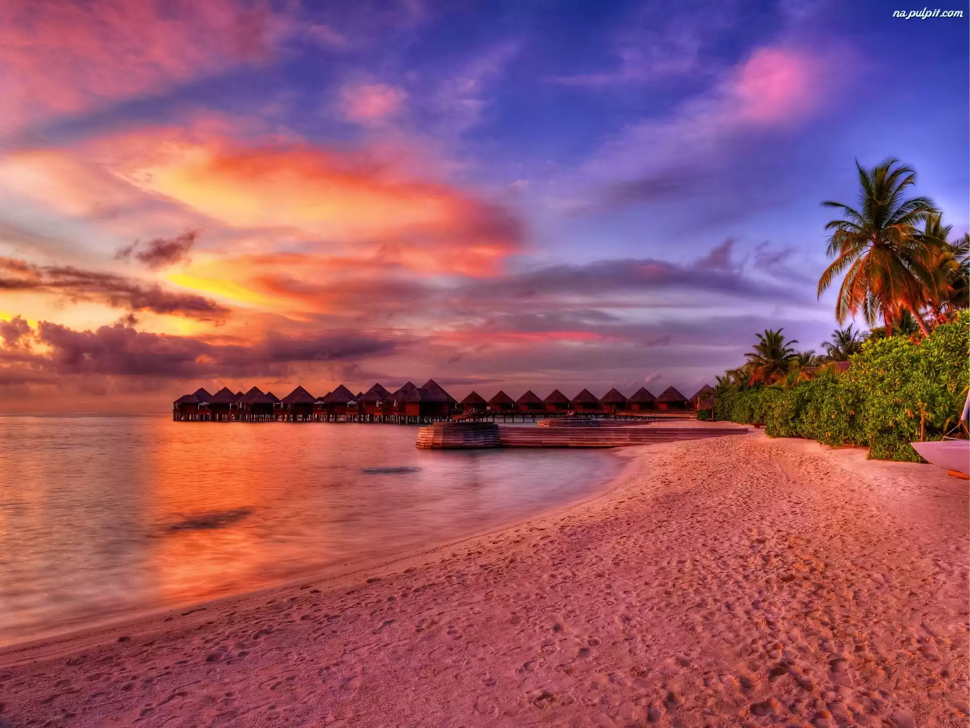 Słońca, Palma, Plaża, Morze, Zachód Na Pulpit