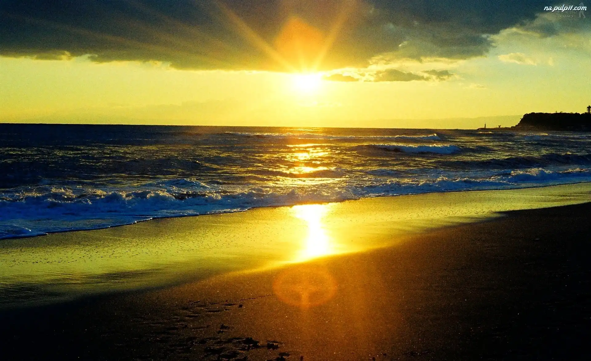 Słońca, Plaża, Morze, Zachód Na Pulpit