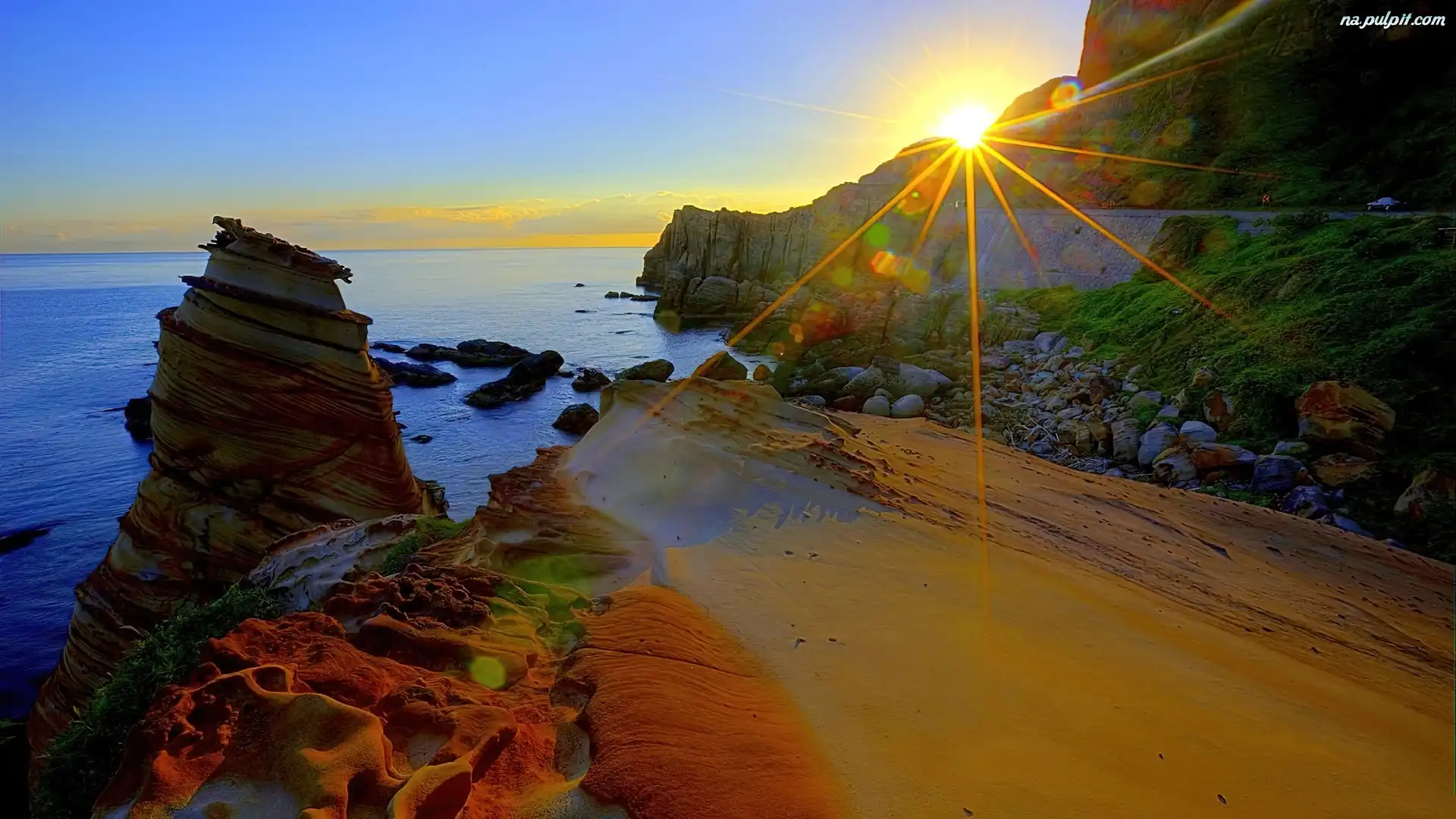 Słońca, Klif, Skały, Morze, Promienie Na Pulpit