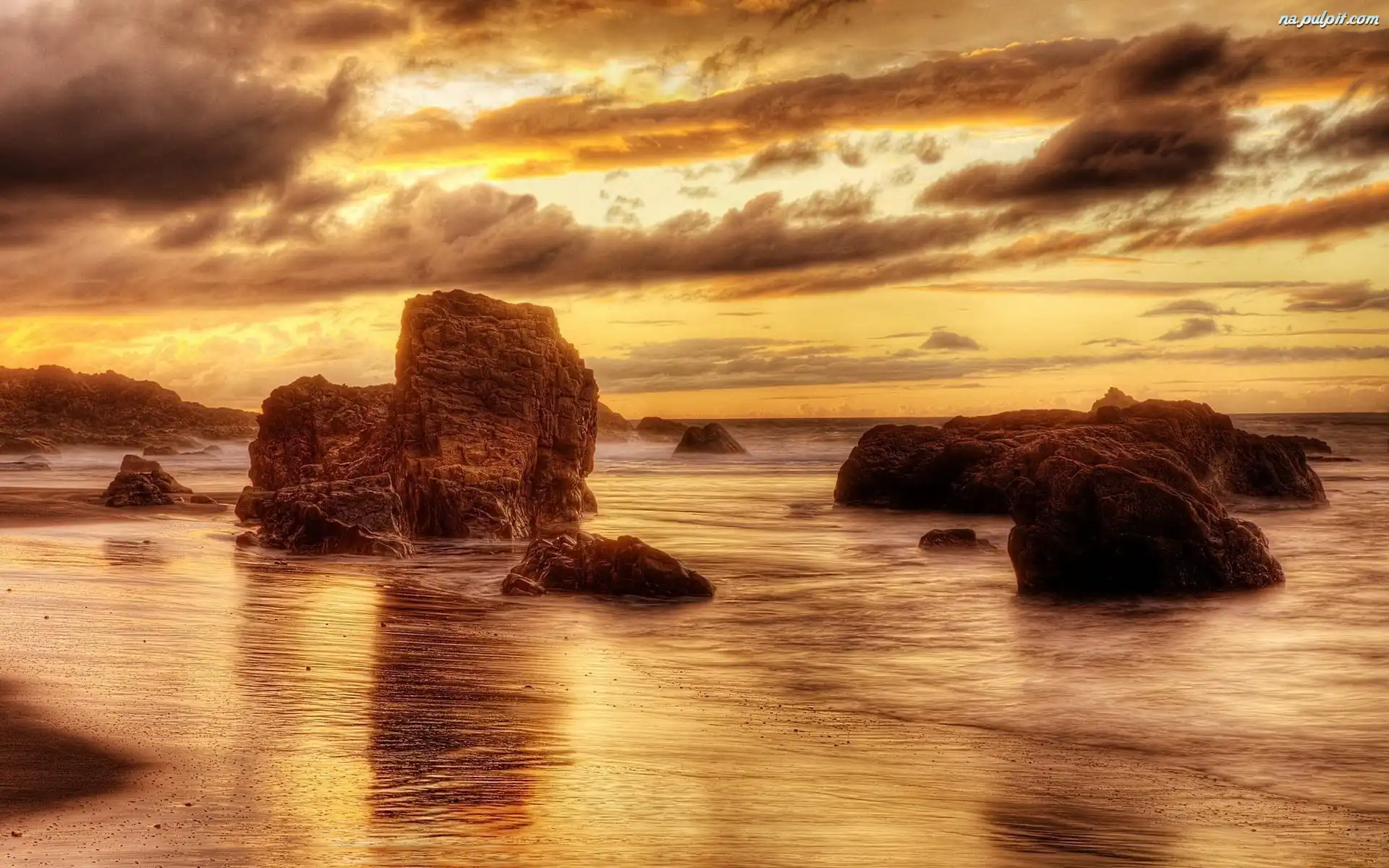 Słońca, Skały, Morze, Zachód Na Pulpit