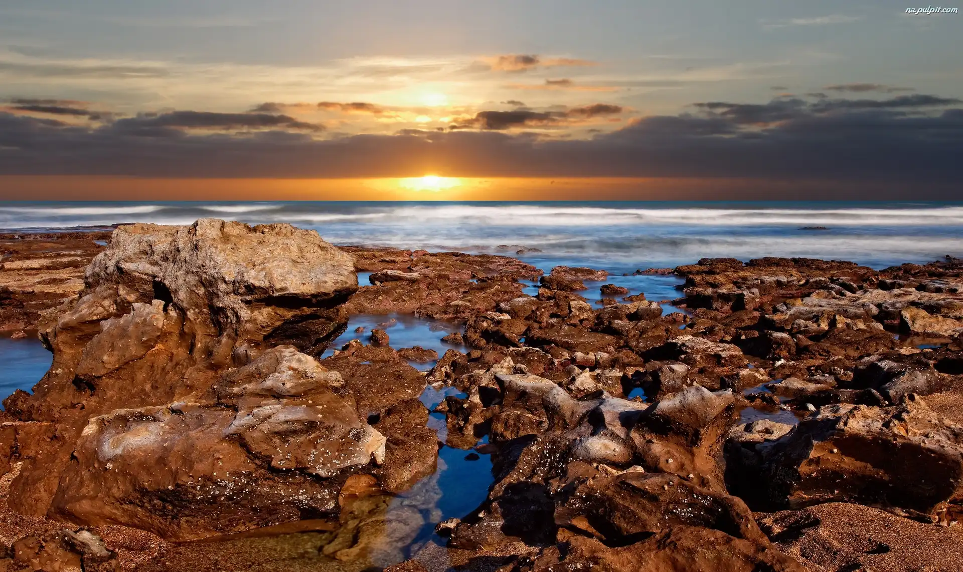 Słońca, Skały, Morze, Zachód Na Pulpit
