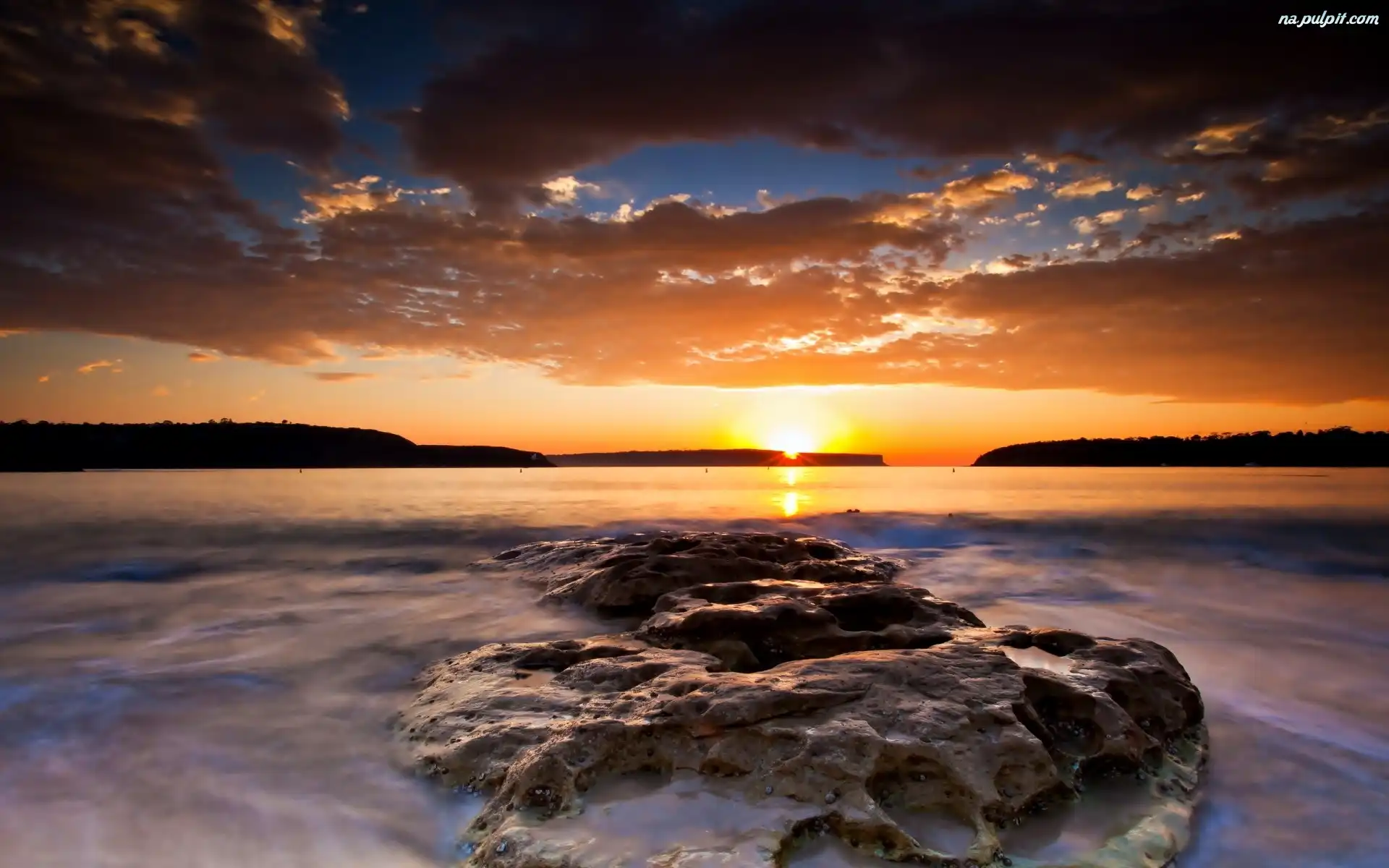 Słońca, Skały, Morze, Zachód Na Pulpit