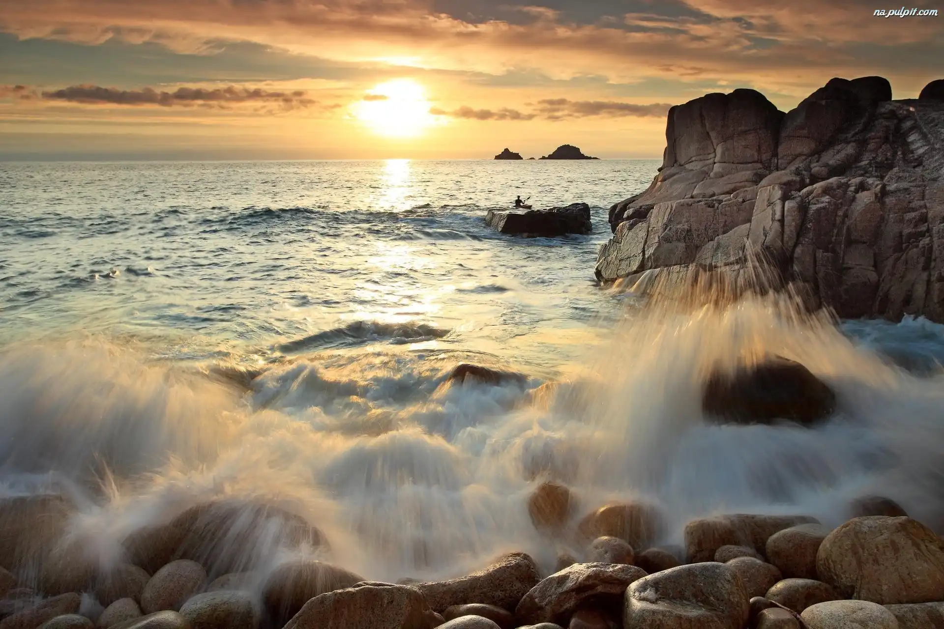 Słońca, Skały, Morze, Zachód Na Pulpit