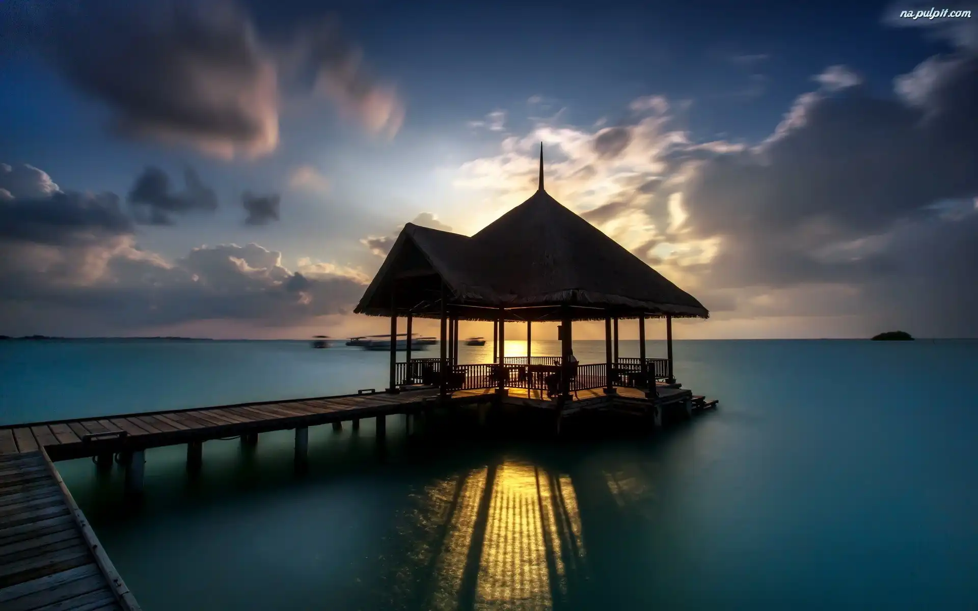 Słońca, Pomost, Statki, Morze, Zachód Na Pulpit