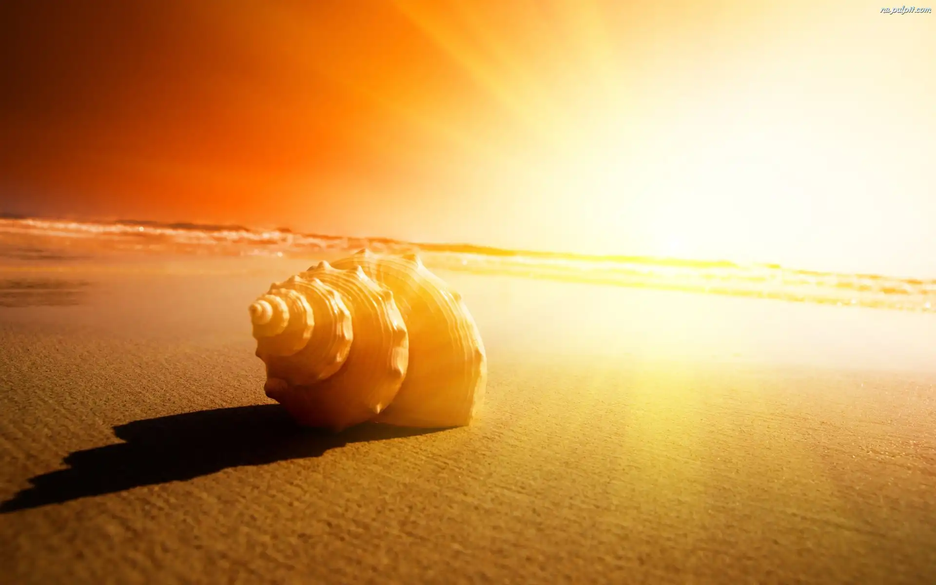 Słońca, Plaża, Muszla, Zachód Na Pulpit