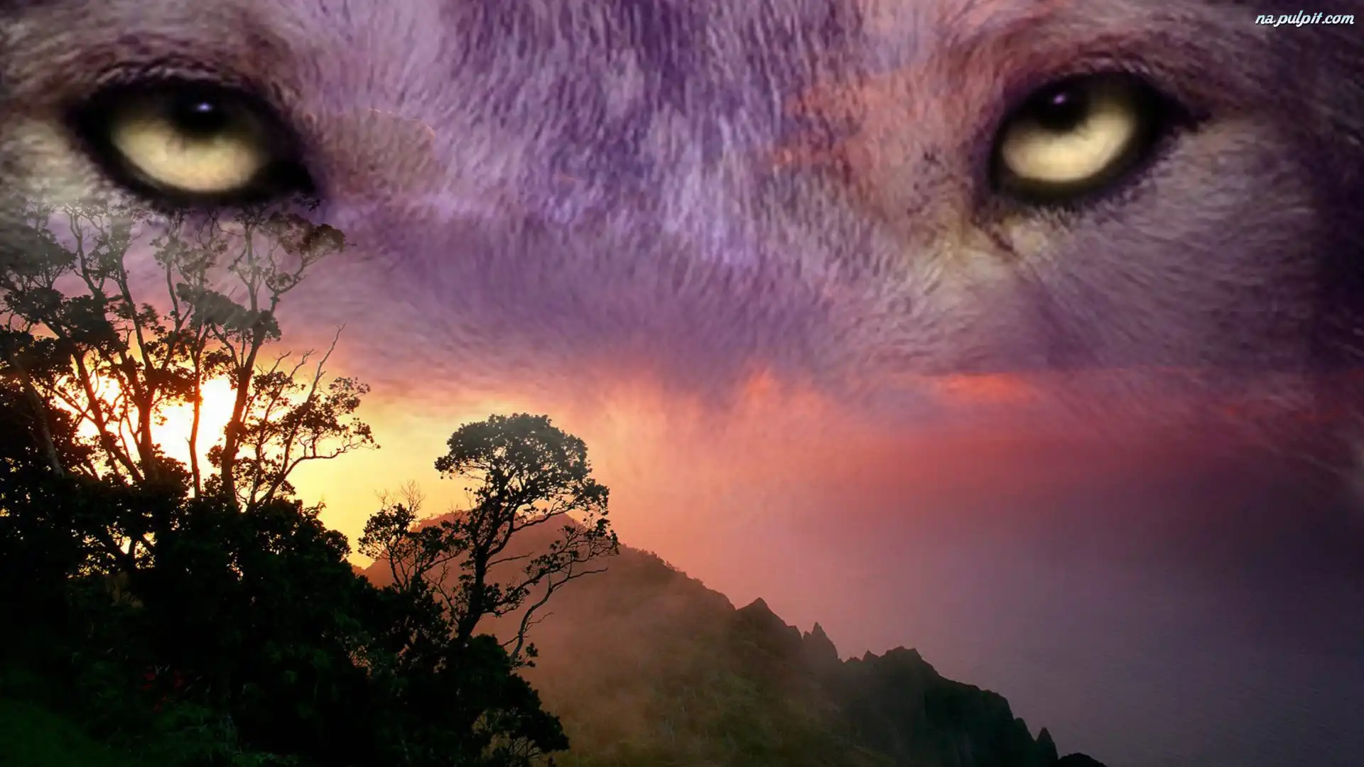 Słońca, Góry, Wilka, Oczy, Zachód Na Pulpit
